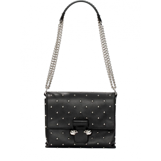 ALEXANDER MCQUEEN Black Leather Studded Twin Skull Flap Shoulder Bag - torebka |