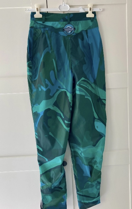 "Spodnie nowe z metkami. Rozmiar z metki S. Wymiary: długość 106cm, talia 35cm, biodra 50cm. Materiał- polyamide."