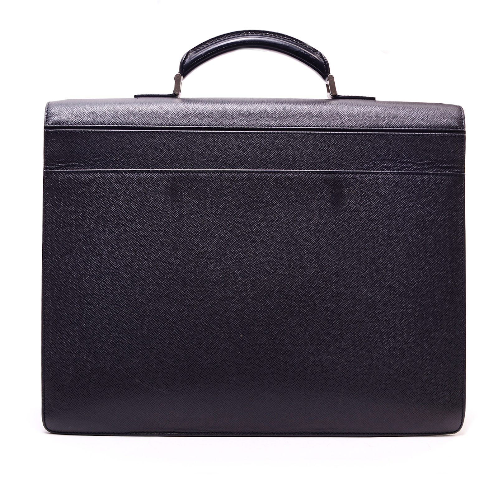 "Czarna torba aktówka , zapinana na srebrne zapięcie. Wykonana ze skóry. Cena regularna 2590 GBP"
