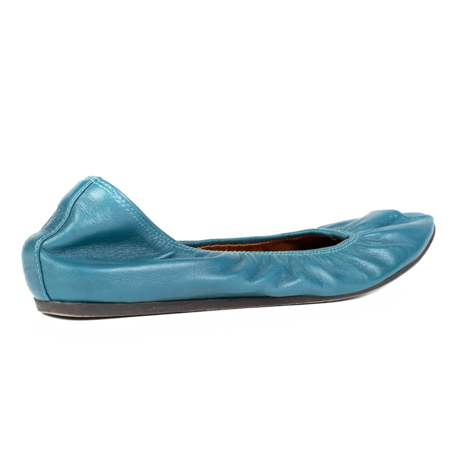 "baletki na gumce, turkusowe, skórzane, odkryty palec, 38, używane"