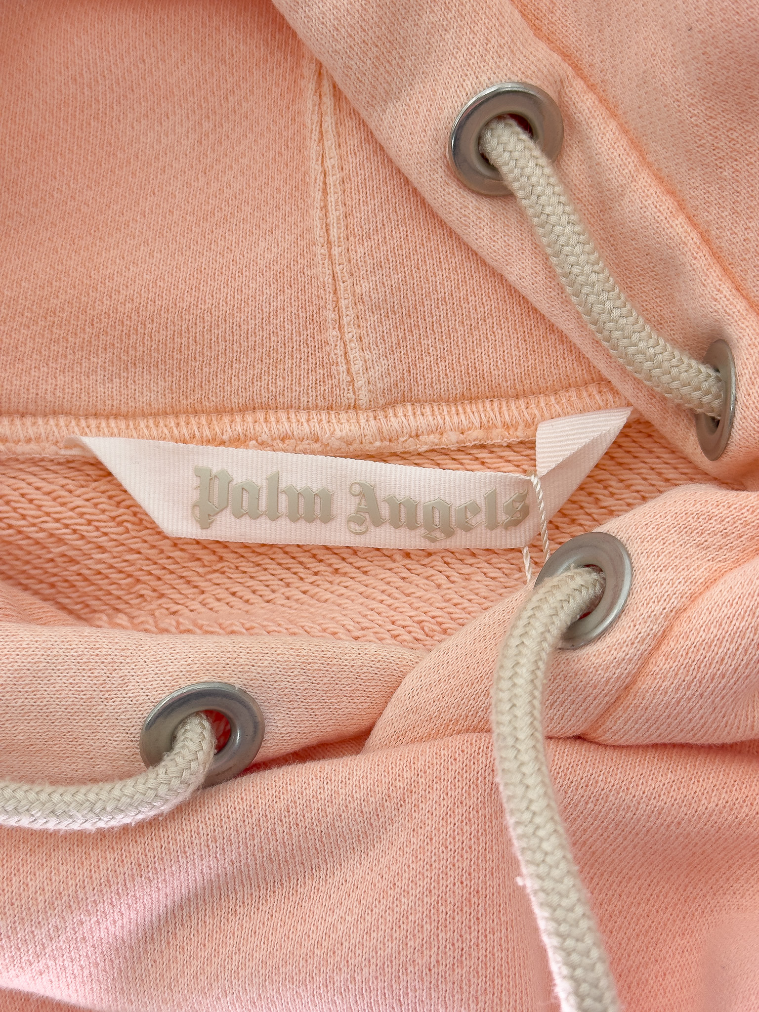 "Bluza w kolorze brzoskwiniowym, regulowany kaptur kremowym logowanym sznurkiem, dół oraz mankiety wykończone prążkowanym ściągaczem, obniżona linia ramion, kieszeń w centralnej części, srebrne detale. Rozmiar z metki M. Skład: 100% bawełna. Wymiary: szerokość mierzona od pacy do pachy 69cm, długość całkowita 67cm."