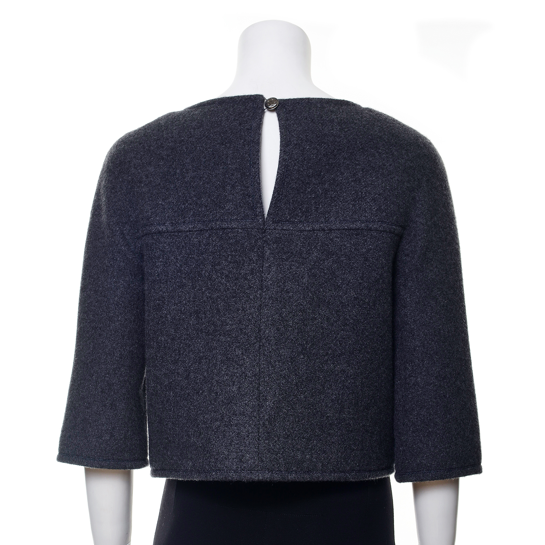 "Szara wełniana pudełkowa bluzka, z duża kieszonka na przodzie z logo marki, rozmiar 34"