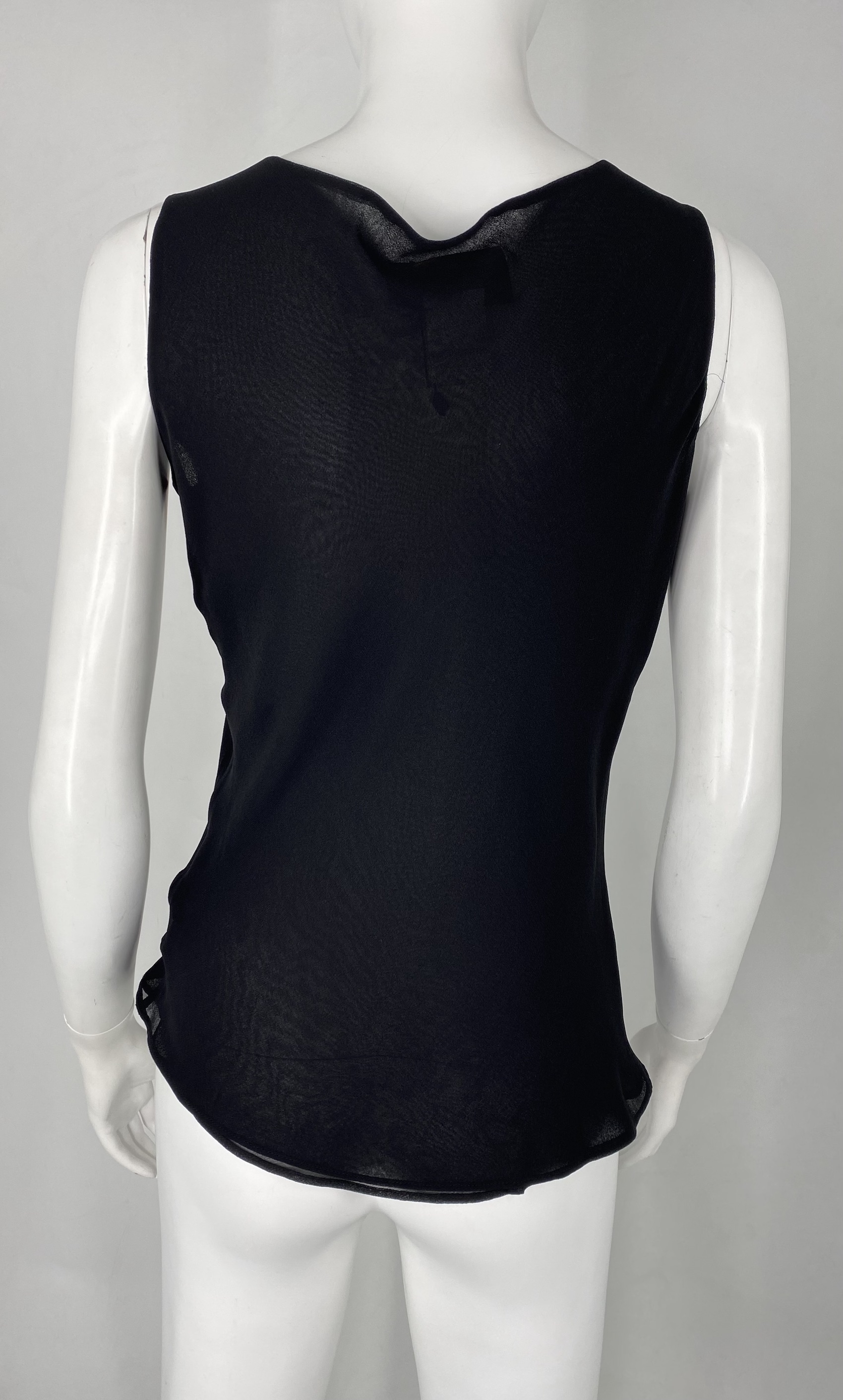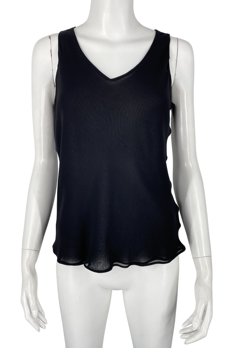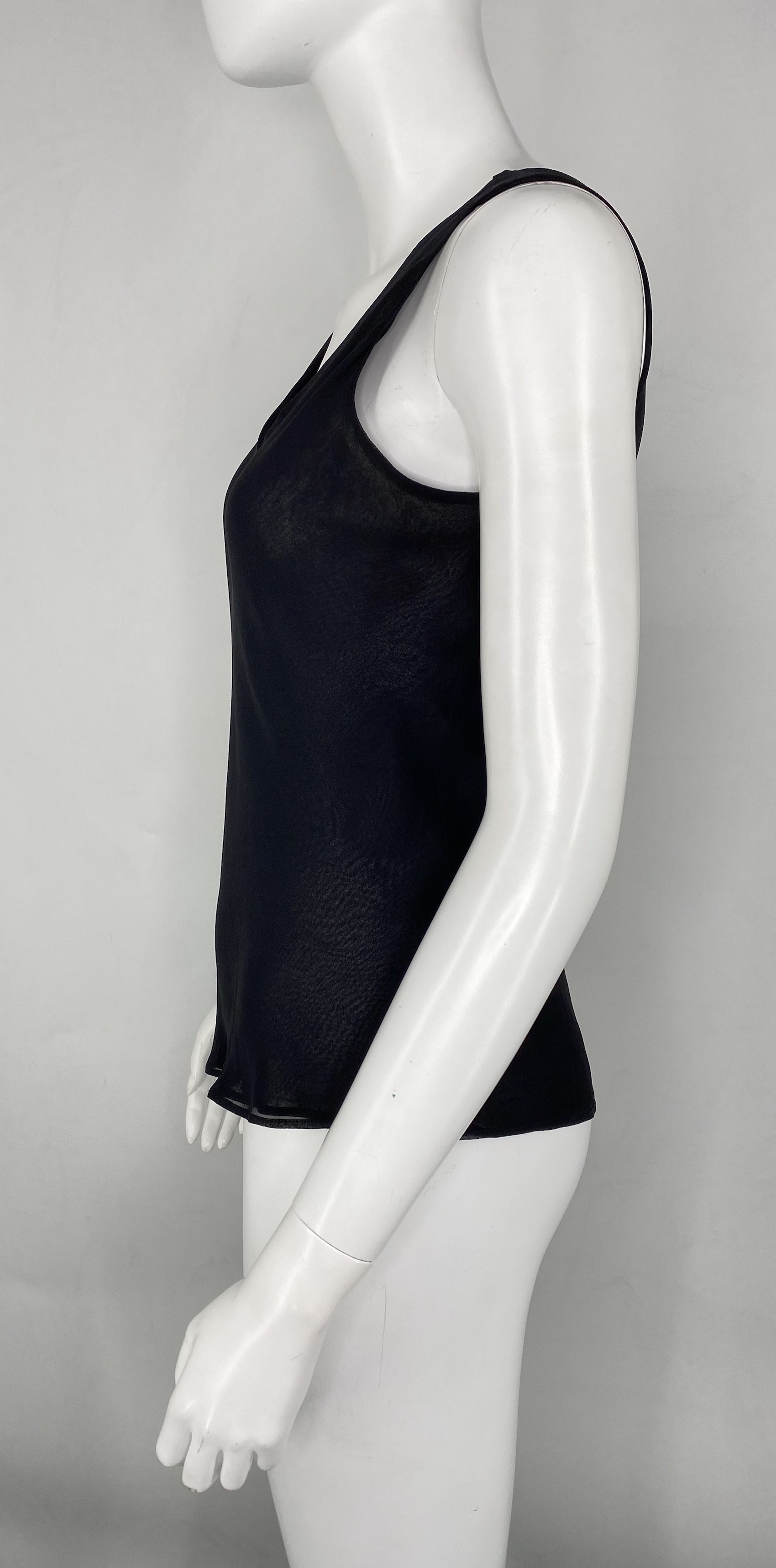"czarny top bez rękawów z dekoltem w szpic. 100% jedwab.