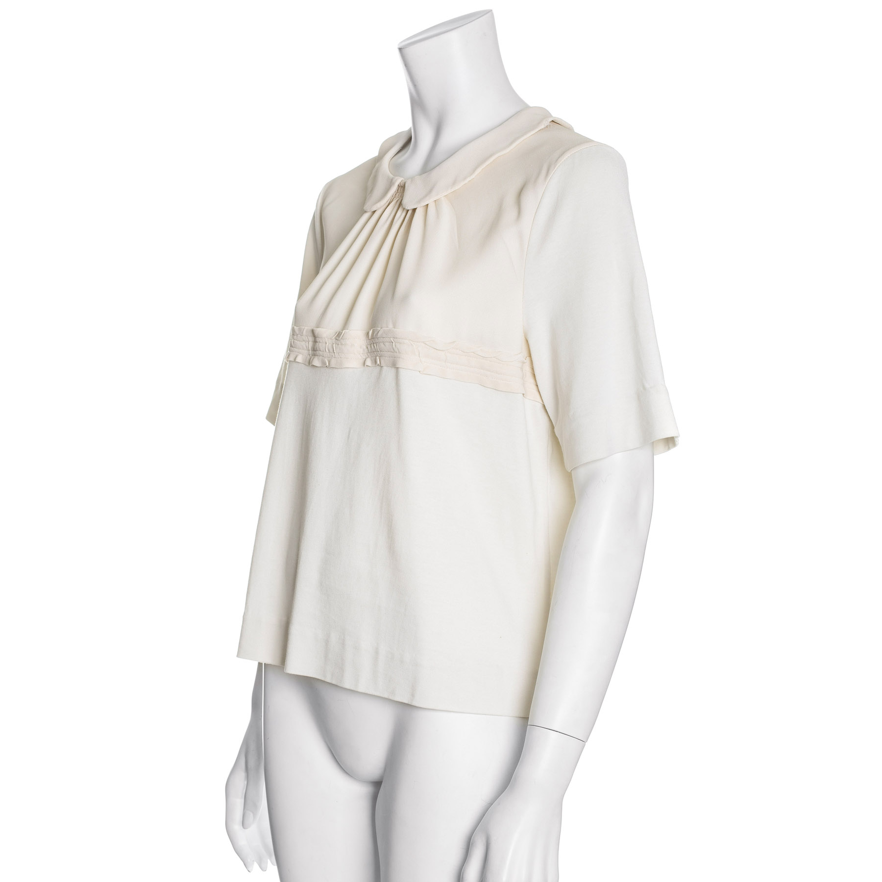 "kremowa bluzka z krótkim rękawem, z suwakiem z tyłu. Rozmiar M"