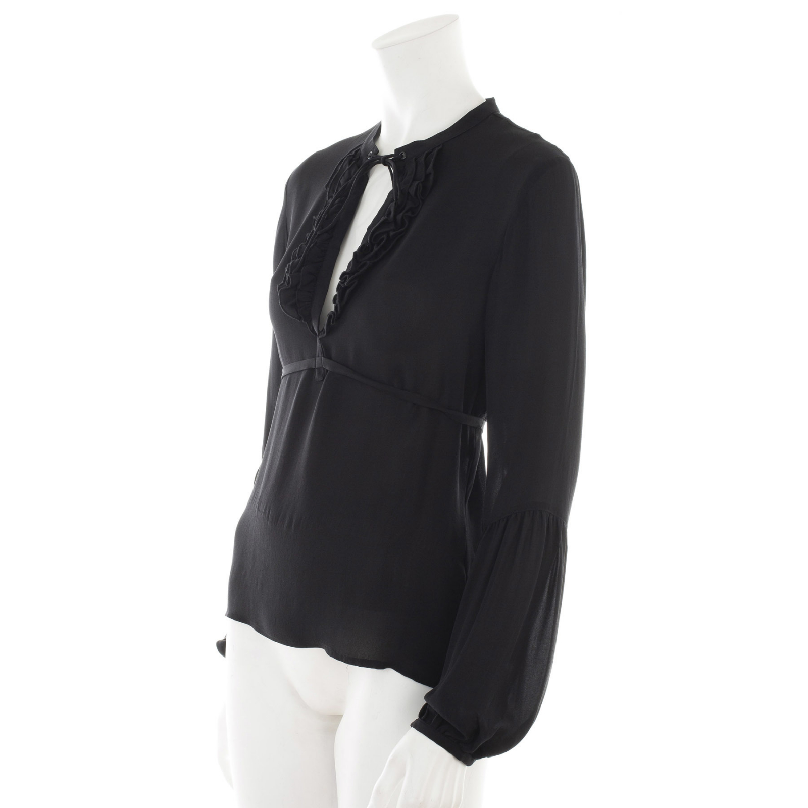 "Koszula z długim rękawkiem, ze sznureczkami i żabotem , lekko transparentna czarna, rozmiar 2"