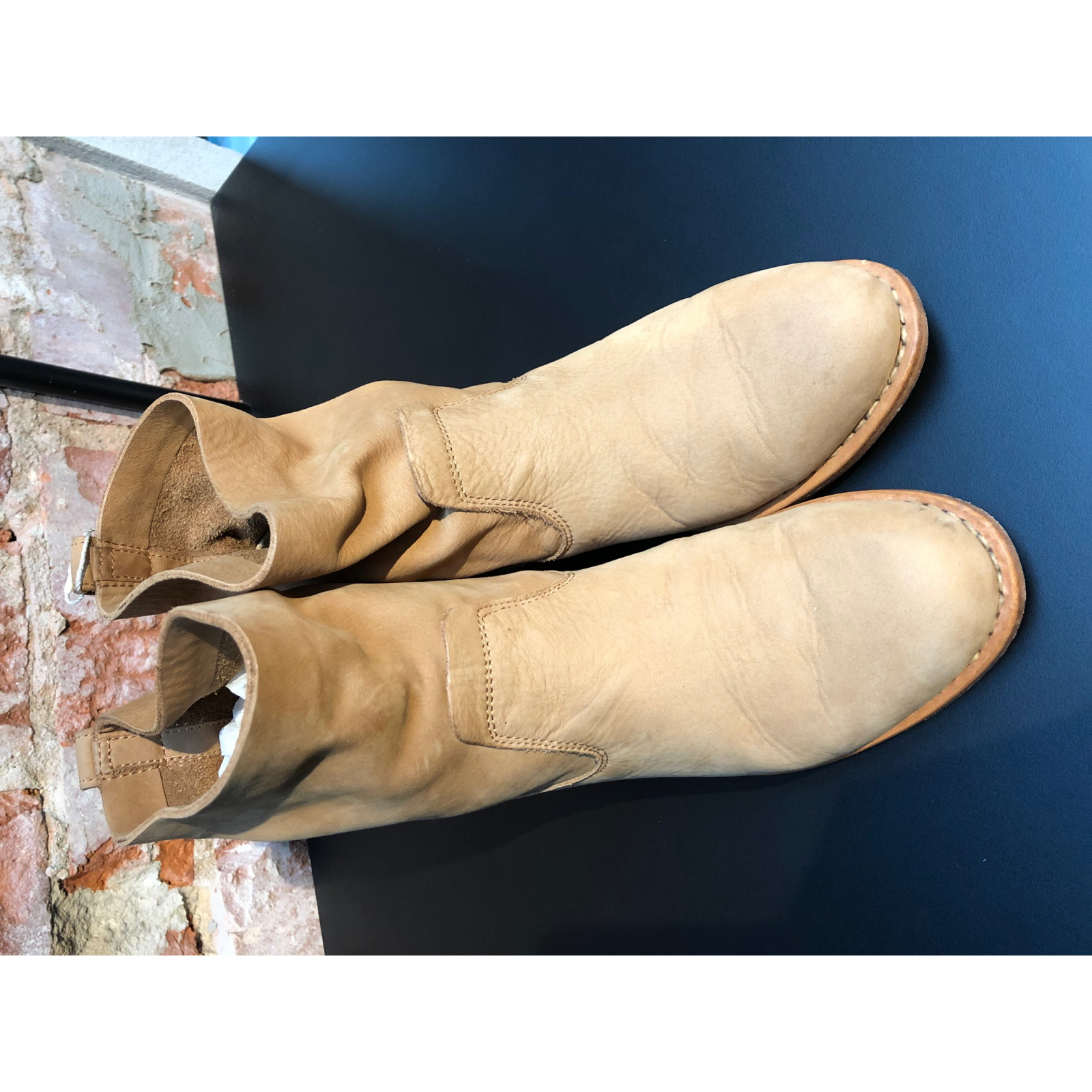 "Kamelowe botki na drewnianym obcasie, wykonane z zamszowej skóry marki rag&bone rozmiar 39. Stan dobry."
