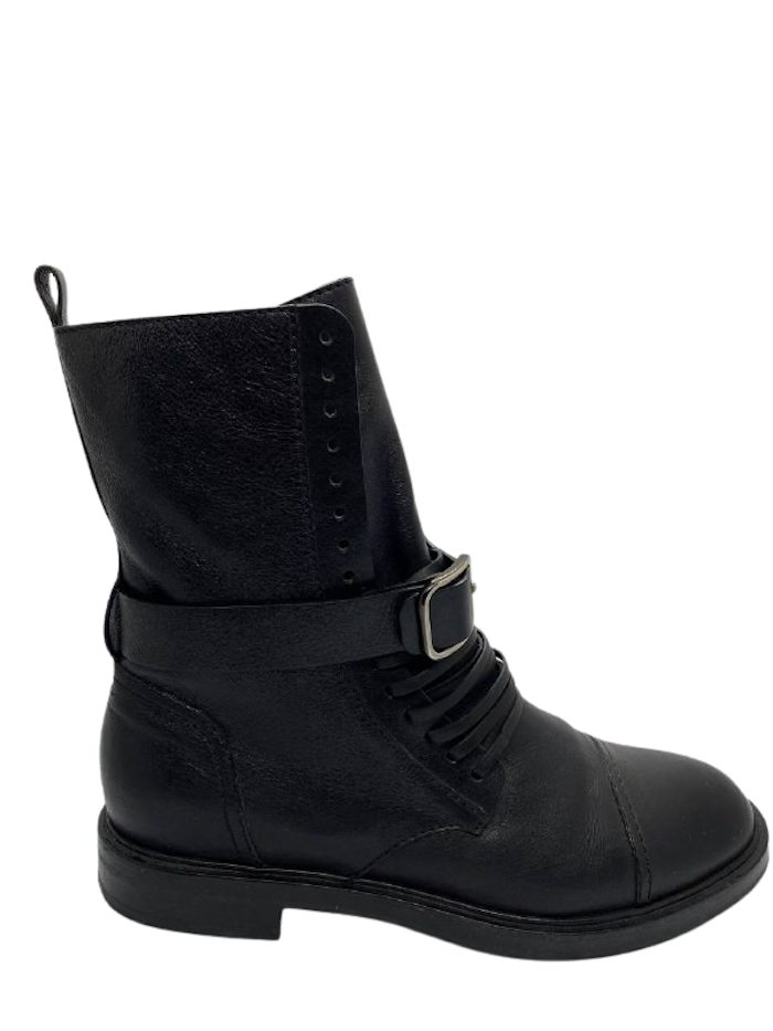 "botki czarne skórzane, skórzane sznurówki, zapinane z boku na srebrny suwak, srebrna klamra Rozmiar 41 Nowe pudełko.