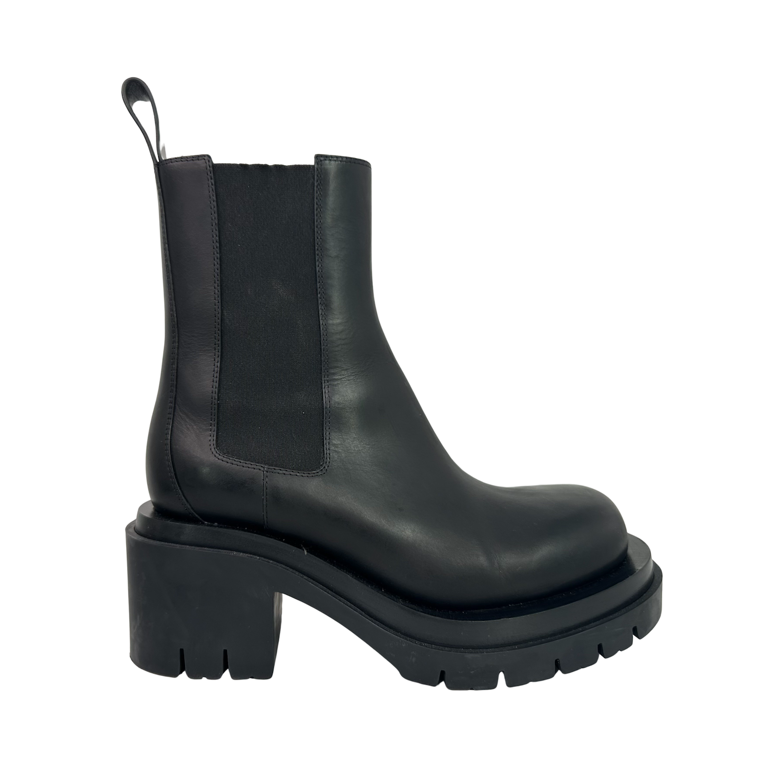 "czarne skórzane botki, traperowa podeszwa, wsuwane, cholewka za kostkę, używane stan. bardzo dobry, w komplecie pudełko i worek przeciwkurzowy. Rozmiar 38,5"