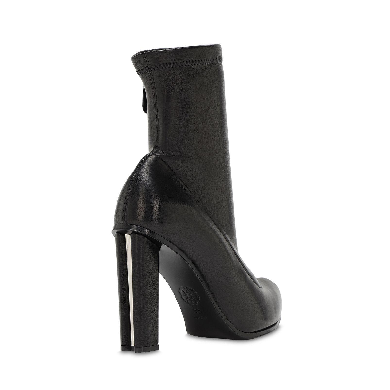 "Czarne skórzane botki na wysokim, częściowo wyciętym słupku, z widoczną srebrną szpilką w obcasie, miękka skóra, elastyczna cholewka, dekoracyjne przeszycia, nosek w szpic, zapinane po wewnętrzej stronie na czarny suwak, w zestawie z workiem przeciwkurzowym, używane. Stan bardzo dobry. Rozmiar 38,5."