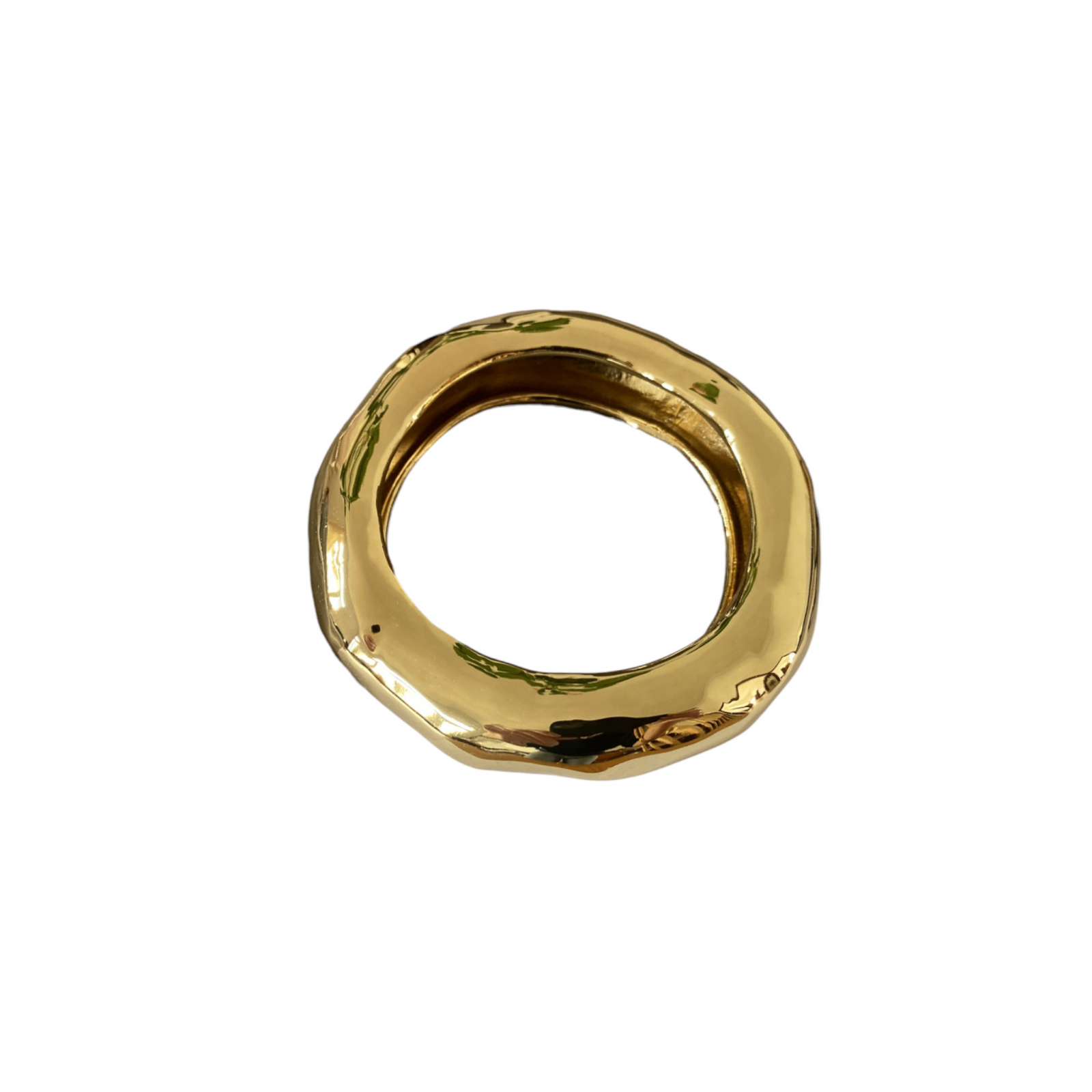 "Złota bransoletka, wkładana, sztywna, okrągły kształt, pozłacana 14k złotem, połyskująca. Stan nowa; wymiary: średnica 6,5 cm."
