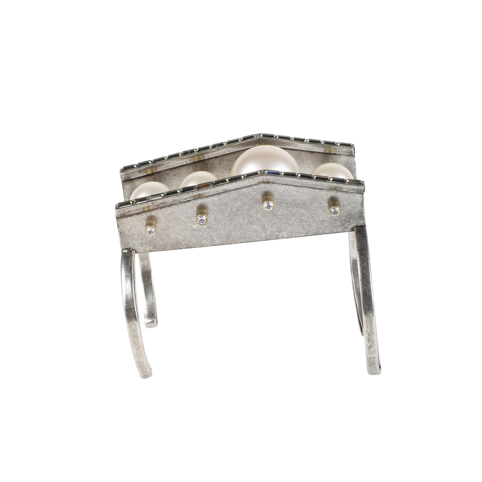 "Srebrna oksydowana bransoletka, szeroka, metalowa z perłami na środku i kryształkami, z pudełkiem/ azov cuff bracelet// 1393 USD."