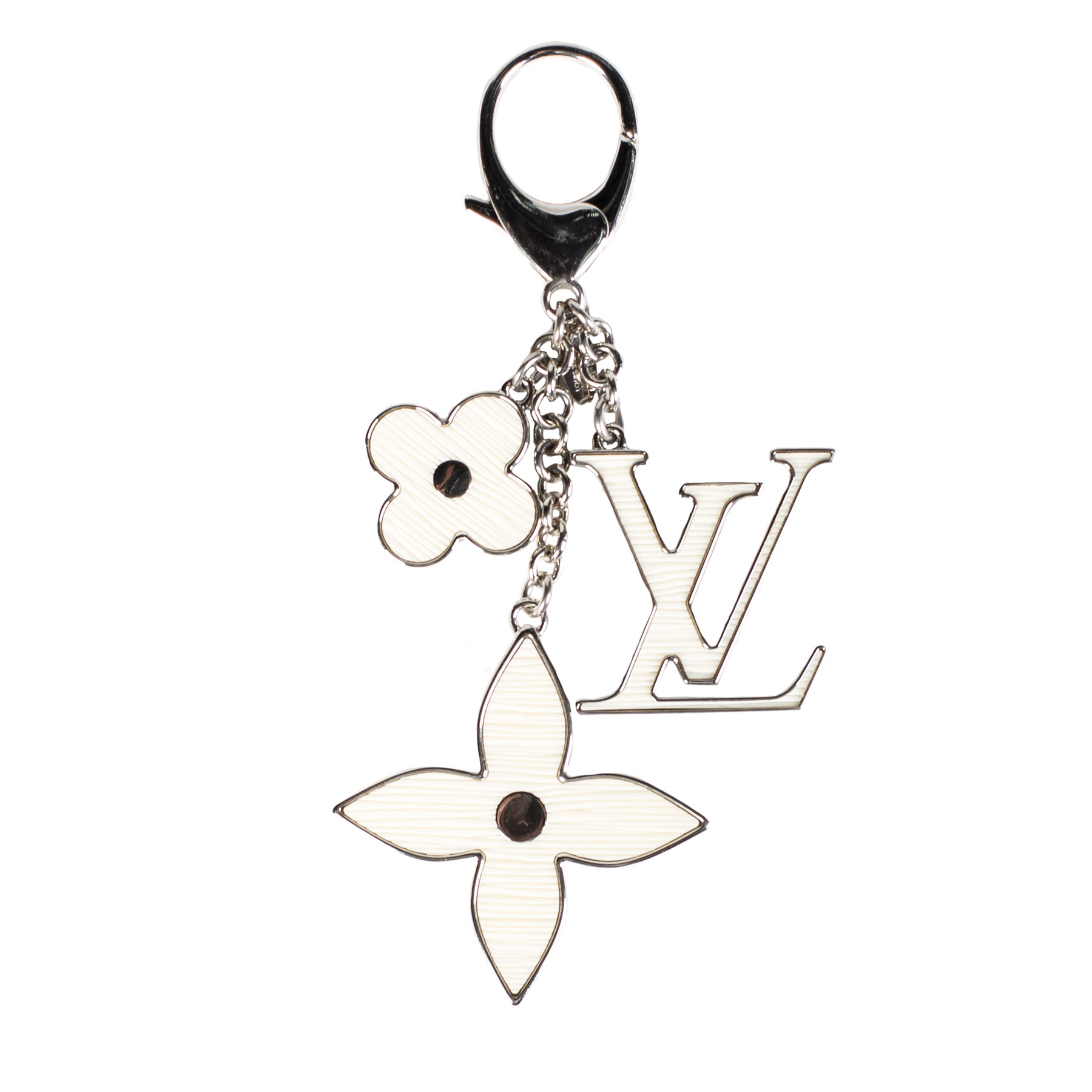 "brelok z kwiatkami i literkami LV w kolorze kości słoniowej Fleur de Monogram"