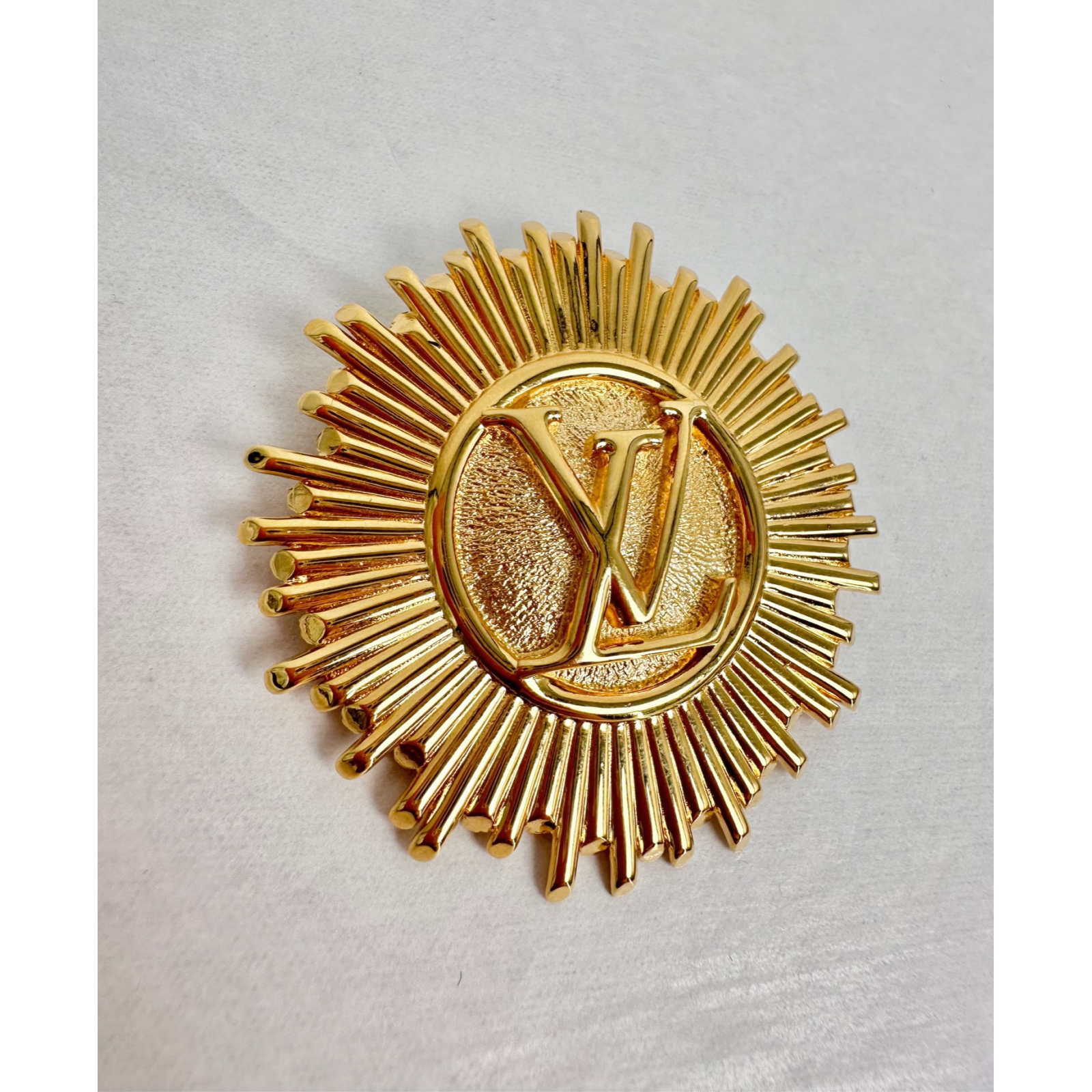 "złota broszka z logiem, w kształcie słońca z promieniami, pudełko w zestawie."