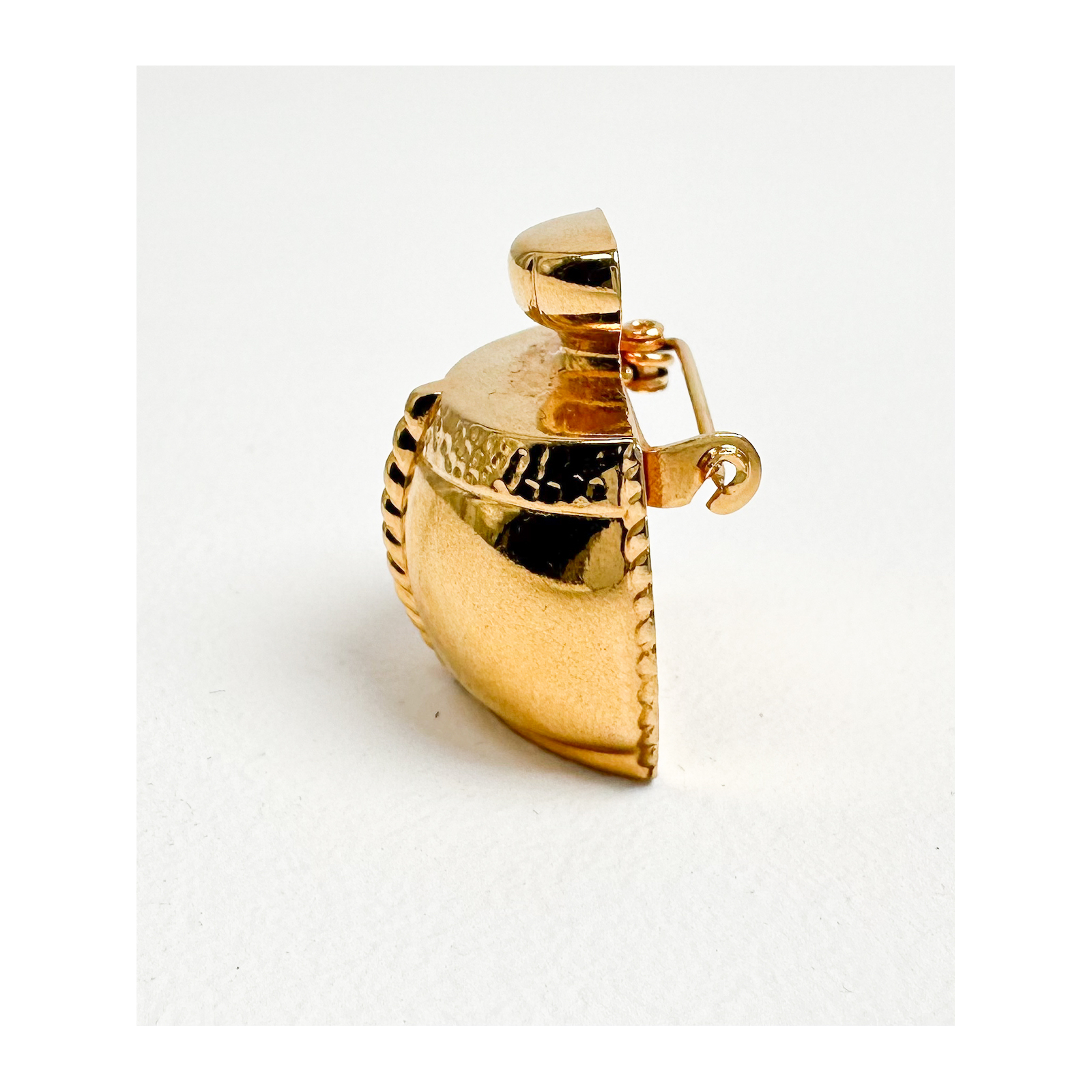 "Złota broszka w kształcie kuferka/perfum"