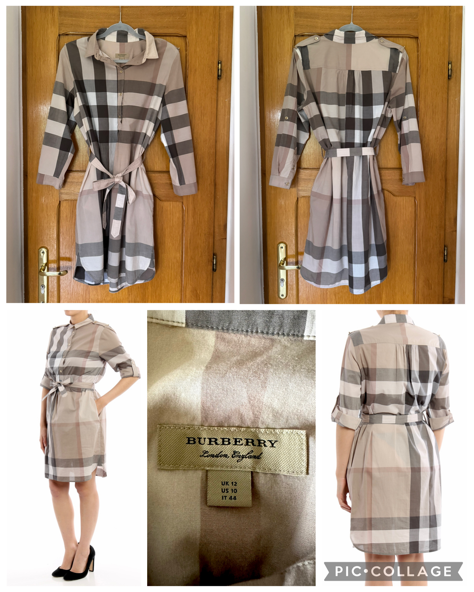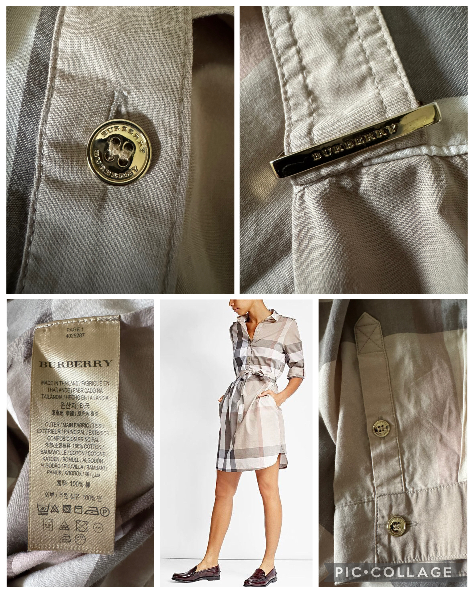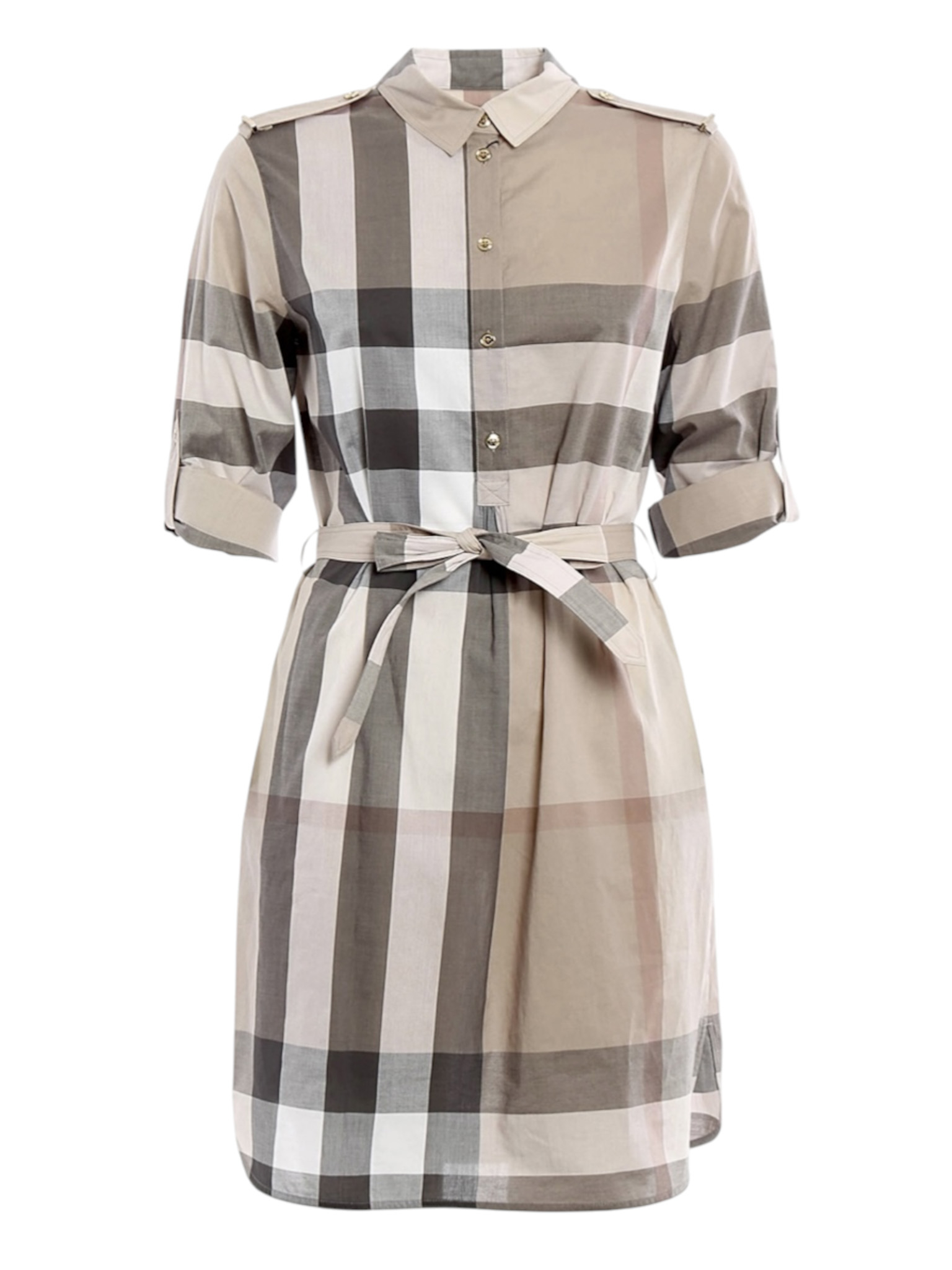 "BURBERRY Women’s Kelsy Check Print Cotton Belted Shirt Dress in Pale Stone – sukienka