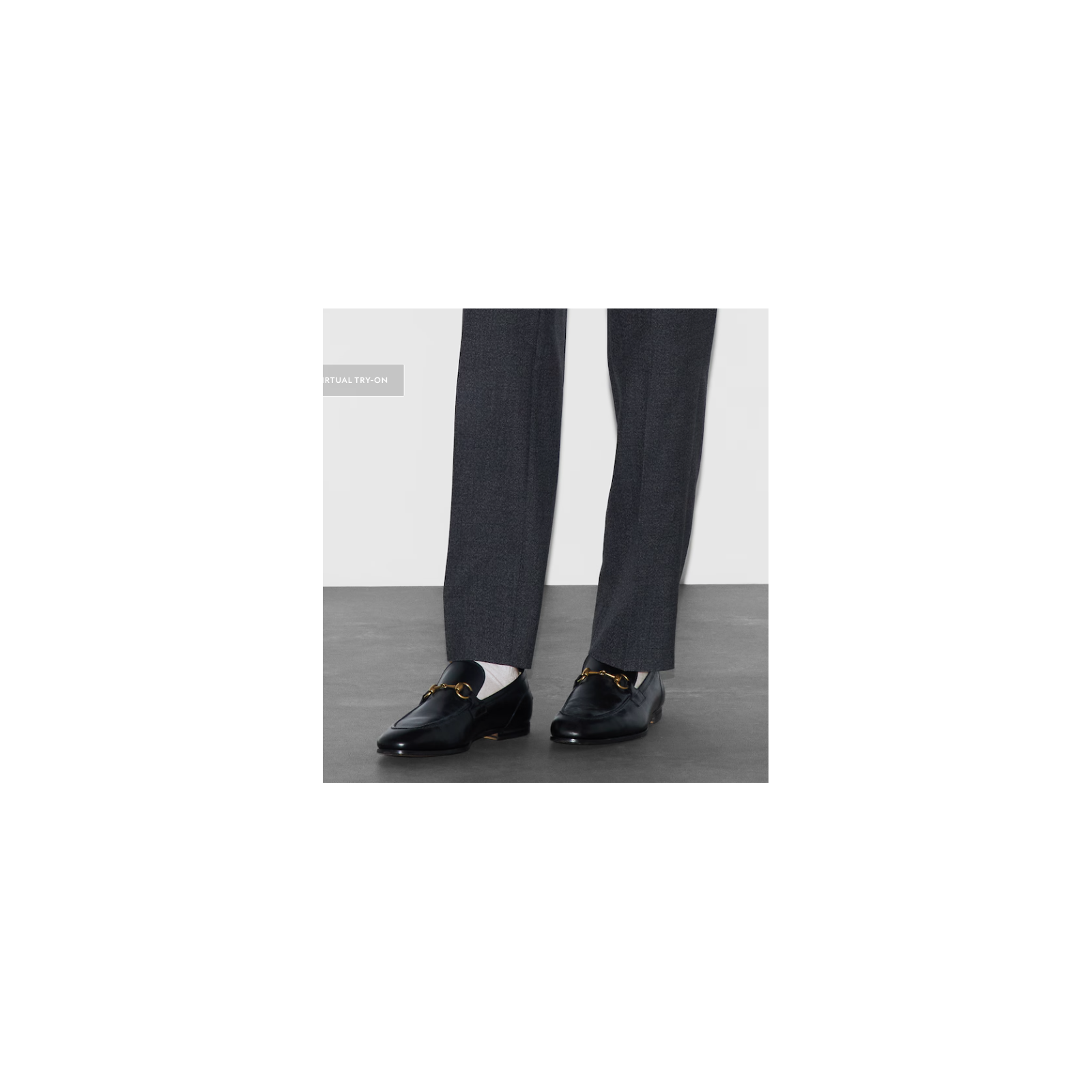 "Czarne skórzane mokasyny ozdobione złotym wędzidłem na przodzie w charakterystycznym dla marki kształcie, wsuwane, zaokrąglone noski, niski obcas, camelowe skórzane wnętrze, w zestawie z workami przeciwkurzowymi oraz pudełkiem. Stan nowe. Rozmiar 10."