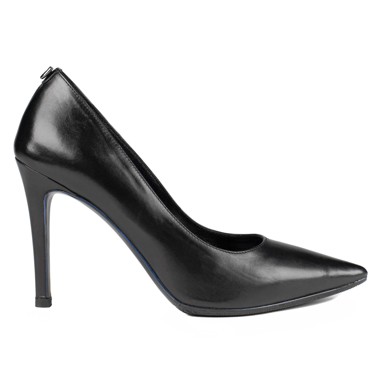 "Szpilki, klasyczne, czarne, czubek w szpic, zelówka, rozmiar 36. W zestawie oryginalne pudełko. Wysokość obcasa 9 cm."