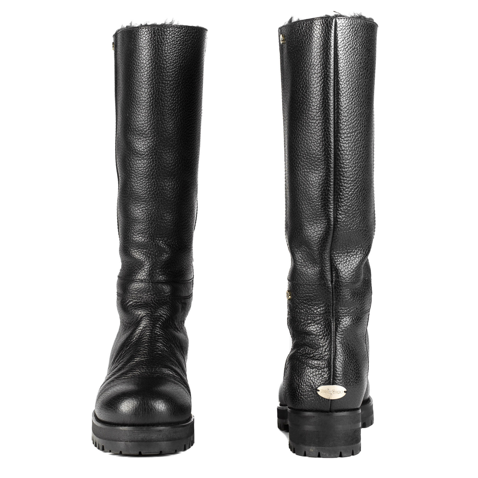 "Czarne kozaki, na traktorowej podeszwie, skórzane, z dwoma złotymi nitami, ocieplane od środka, rozmiar 38,5"