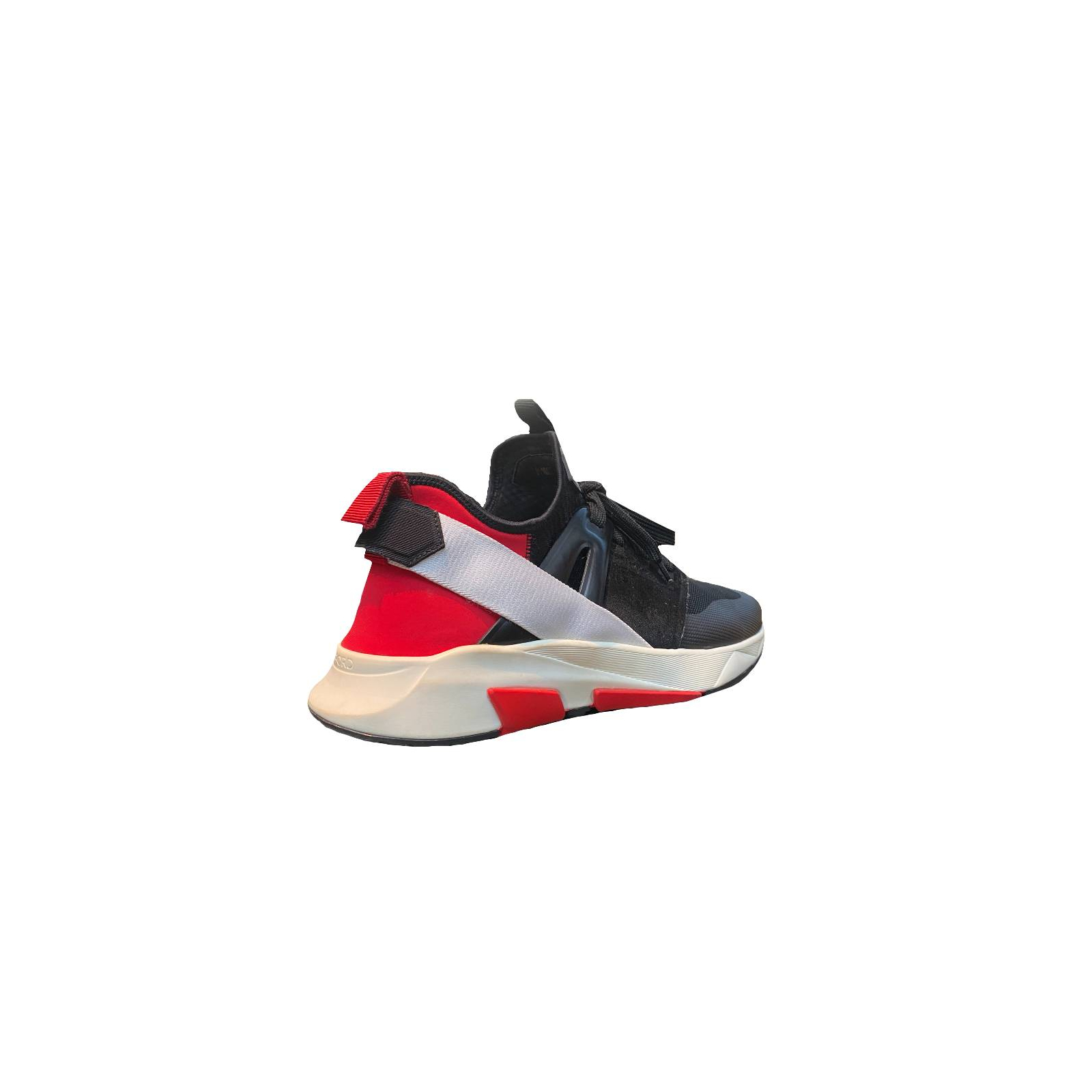 "Czarne buty sportowe, biała podeszwa, czerwona pięta, rozmiar 11"
