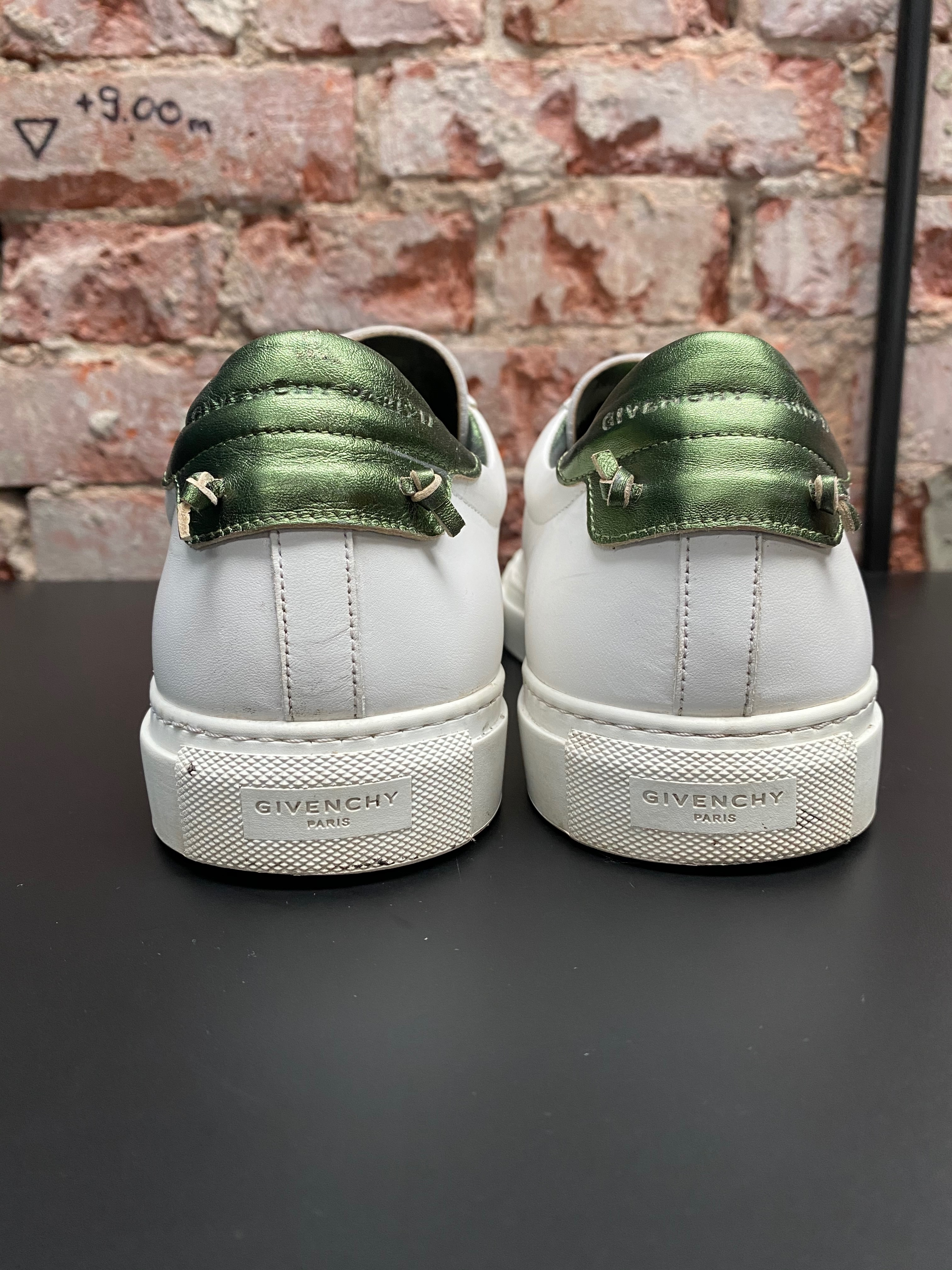 "Białe skórzane, zielona wkładka i pięta, rozmiar 45"