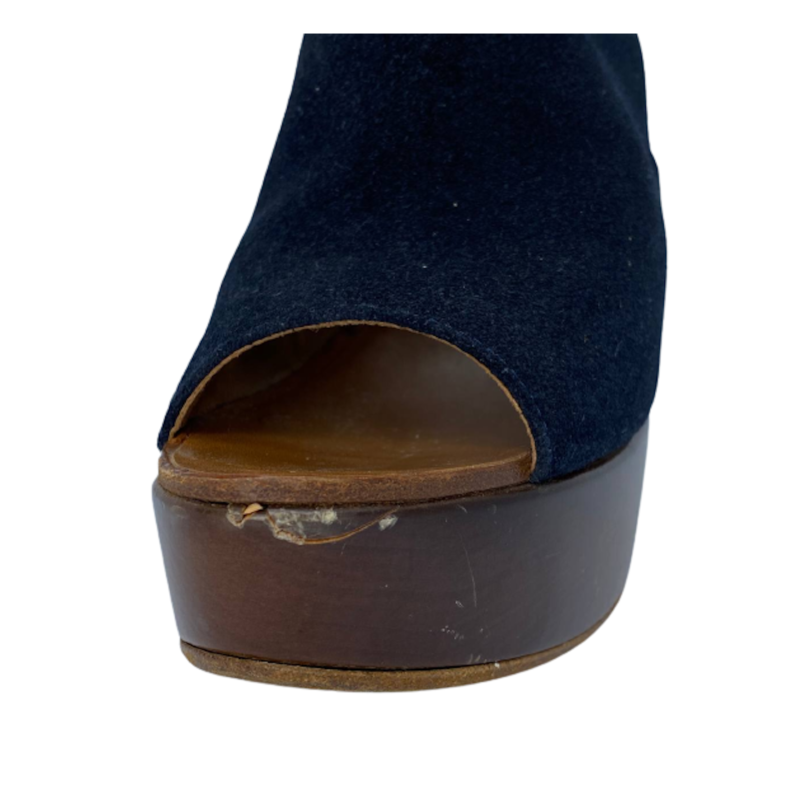 "Chodaki na obcasie 13cm z platformą 3,5cm z granatowego zamszu