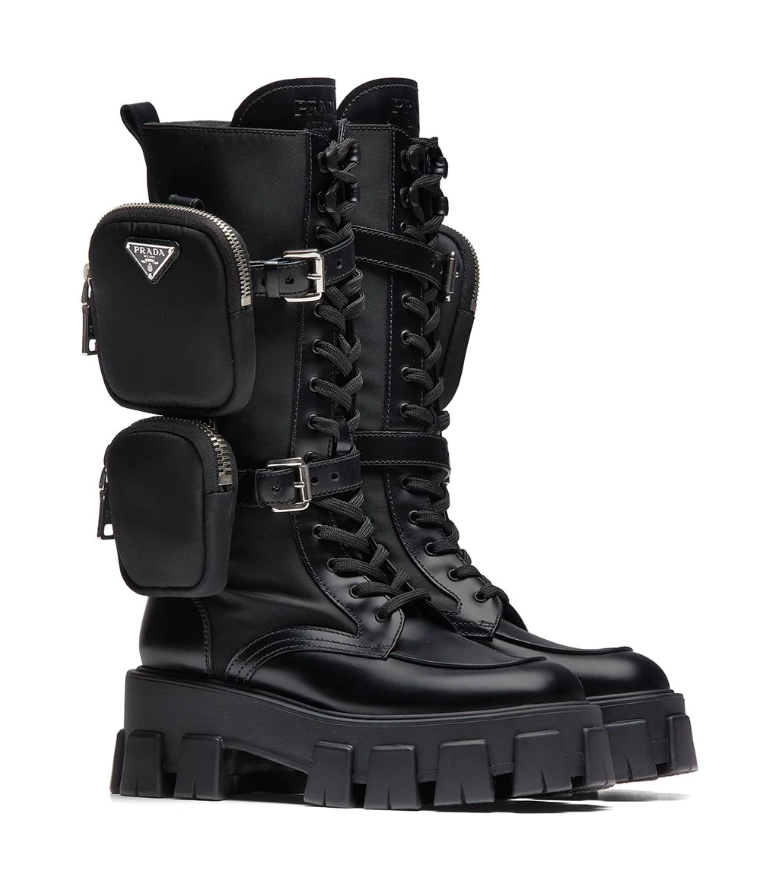 "czarne wysokie kozaki, połączenie skóry oraz materiału. Dwie odpinane kieszenie po bokach. Monolith leather black boots. Rozmiar 39,5. Nowe z pudełkiem, woreczkami oraz dokumentem zakupu. Długość wkładki - 26 cm."