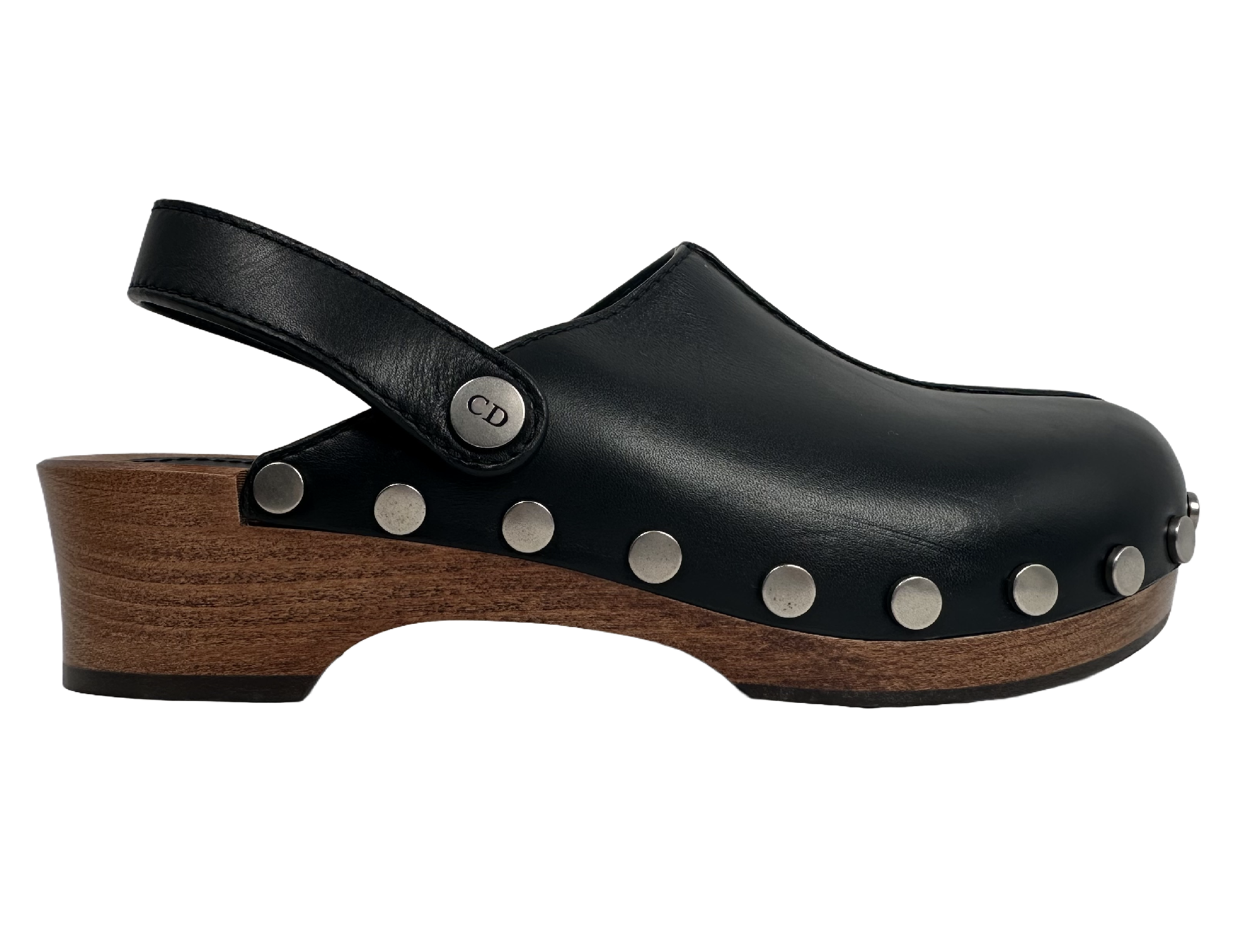 "czarne skórzane chodaki na drewnianej platformie, srebrne okucia, logowanie z boku buta. Rozmiar 37.5. Stan nowe, worek przeciwkurzowy w zestawie."