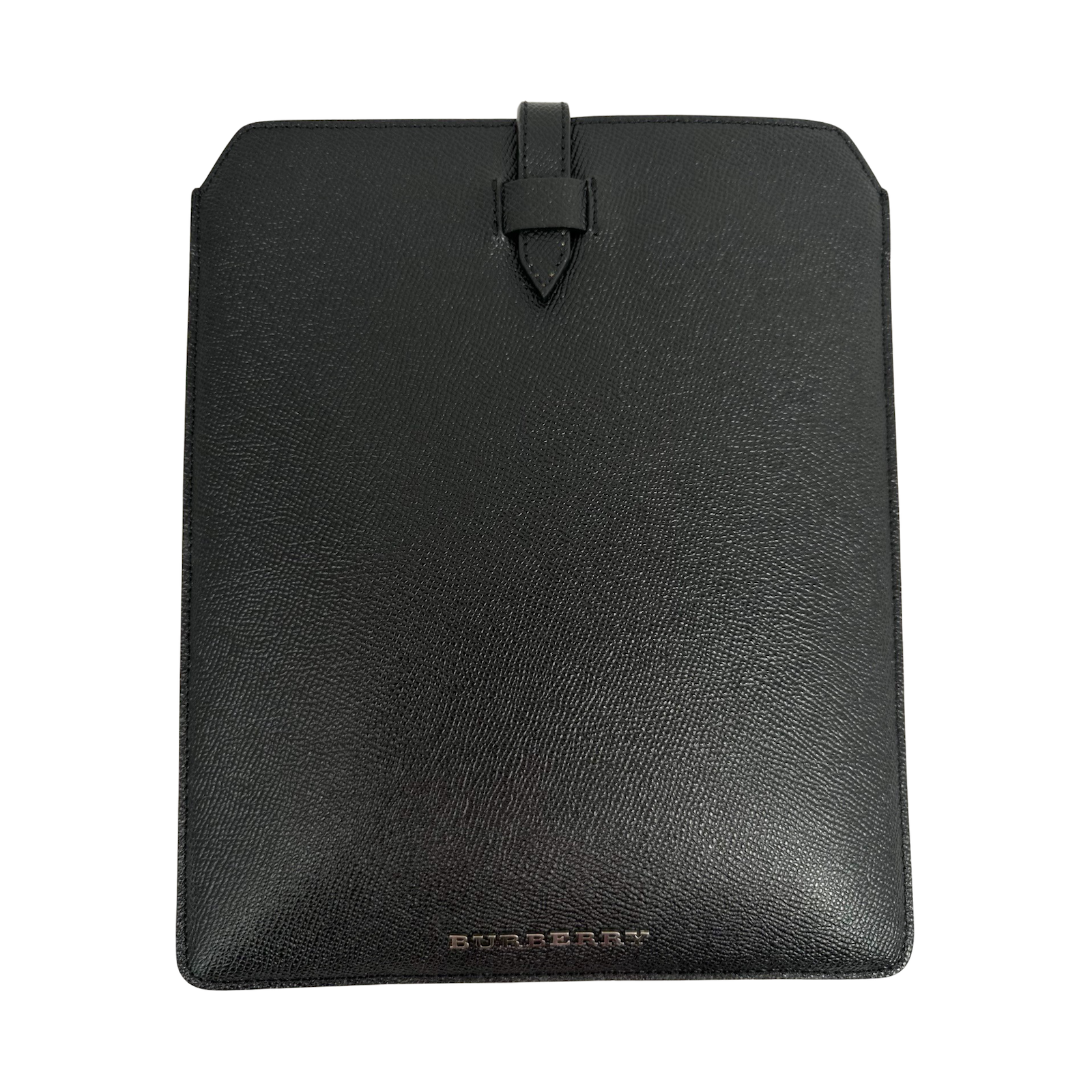 "Burberry Black Pebbled Leather iPad Case, czarne skórzane etui na iPada, z przodu na dole logo, stan idealny, worek przeciwkurzowy w zestawie. Wymiary: szer. 21 cm, wys. 26 cm."