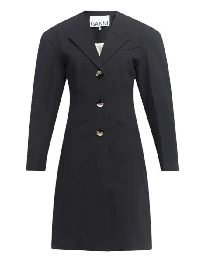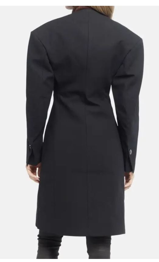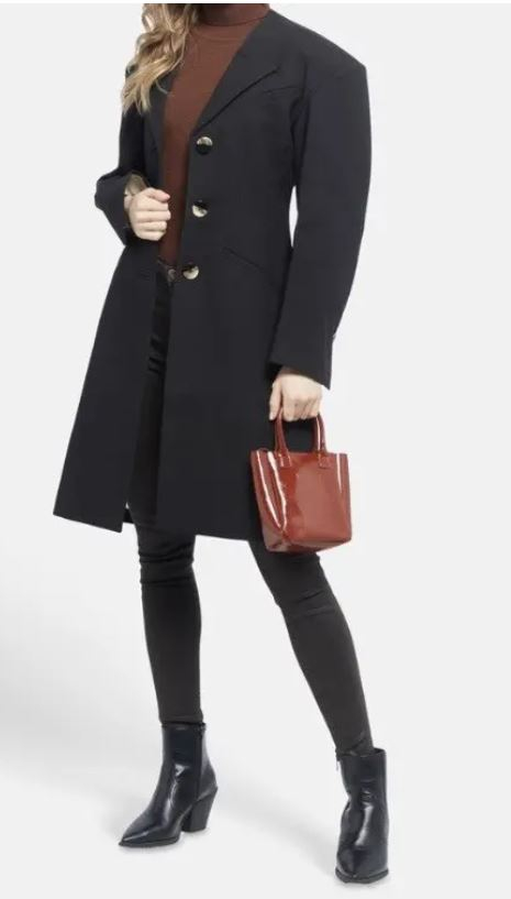 ""Nowy czarny płaszcz z poszerzanymi ramionami, organic cotton długość 105cm, klatka piersiowa 50cm""