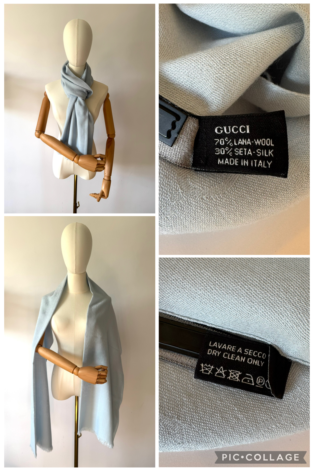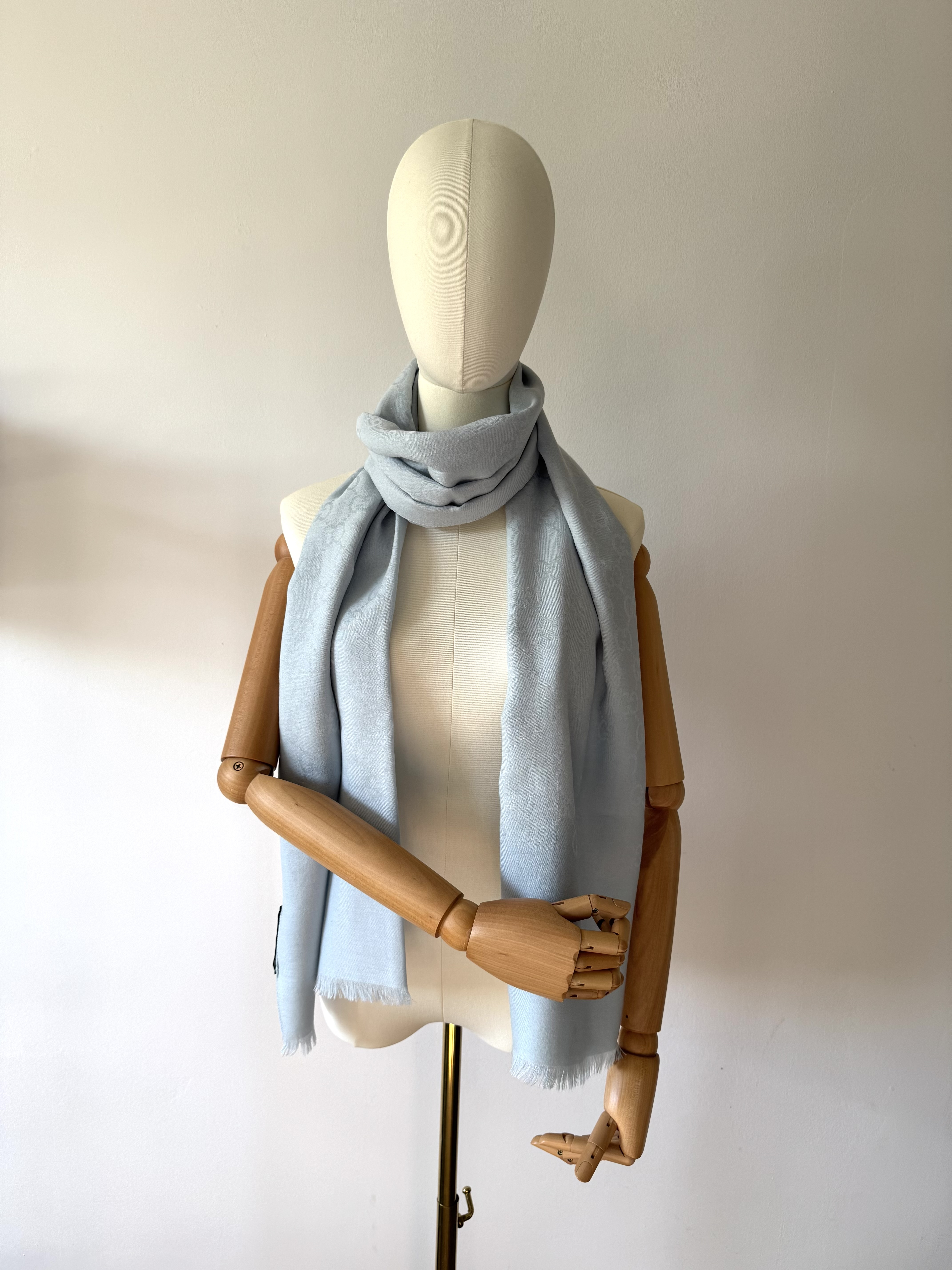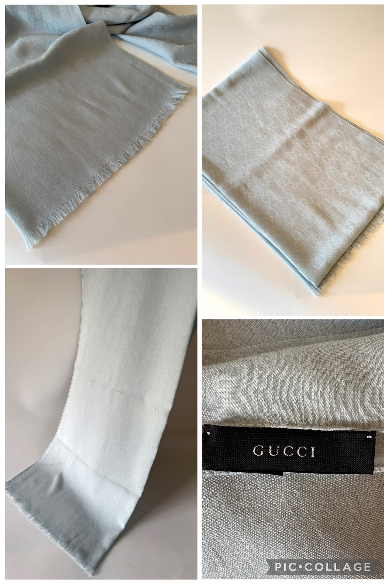 ▪️Wykonany we Włoszech z mieszanki wełny i jedwabiu, tkany z charakterystycznym dla marki logo „GG” i obszyty miękkimi frędzlami.