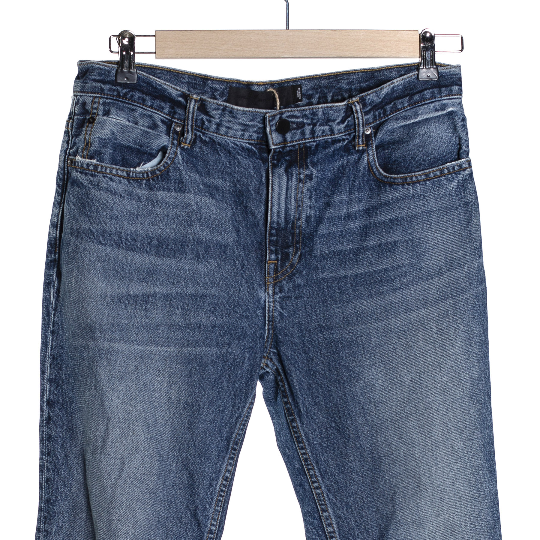 "jeansy granatowe, wysoki stan, delikatnie zwężane na dole, size 29"