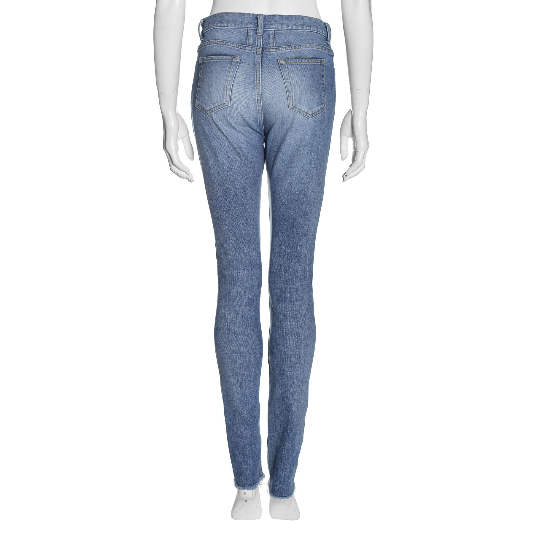 "niebieskie klasycznie jeansy zwężane na dole, postrzępione nogawki, roz. 27"