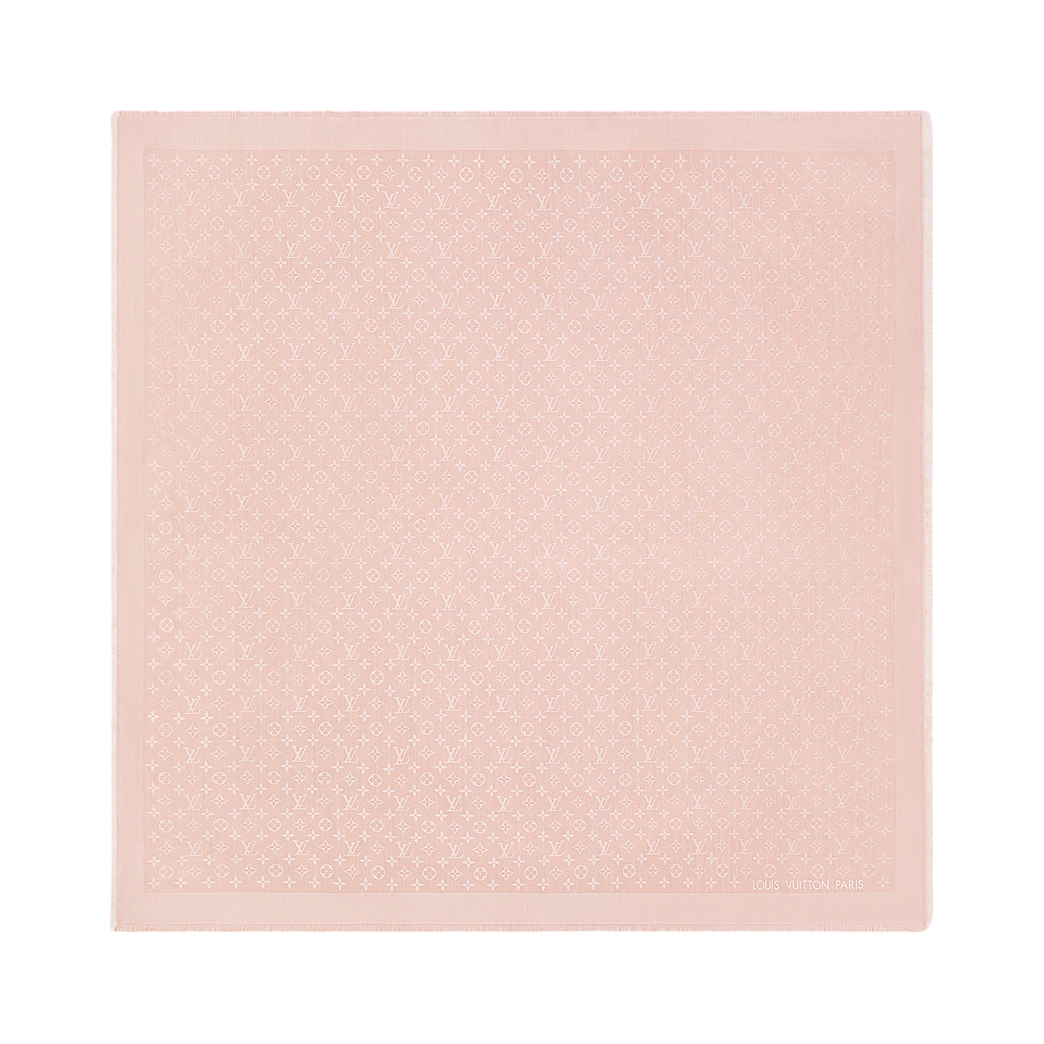 "Jedwabno-wełniana chusta w kolorze pudrowego różu w wyszyty monogram marki, zakończona krótkimi frędzlami, logo marki przy jednym rogu. Stan: nowy, bez pudełka. Skład: 60% jedwab, 40% wełna. Wymiary: 144cm x 142cm."
