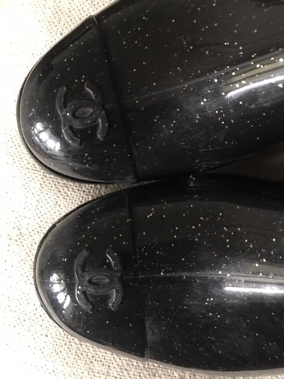 "Kalosze Chanel czarne ,w bardzo dobry stanie , rozmiar 39"