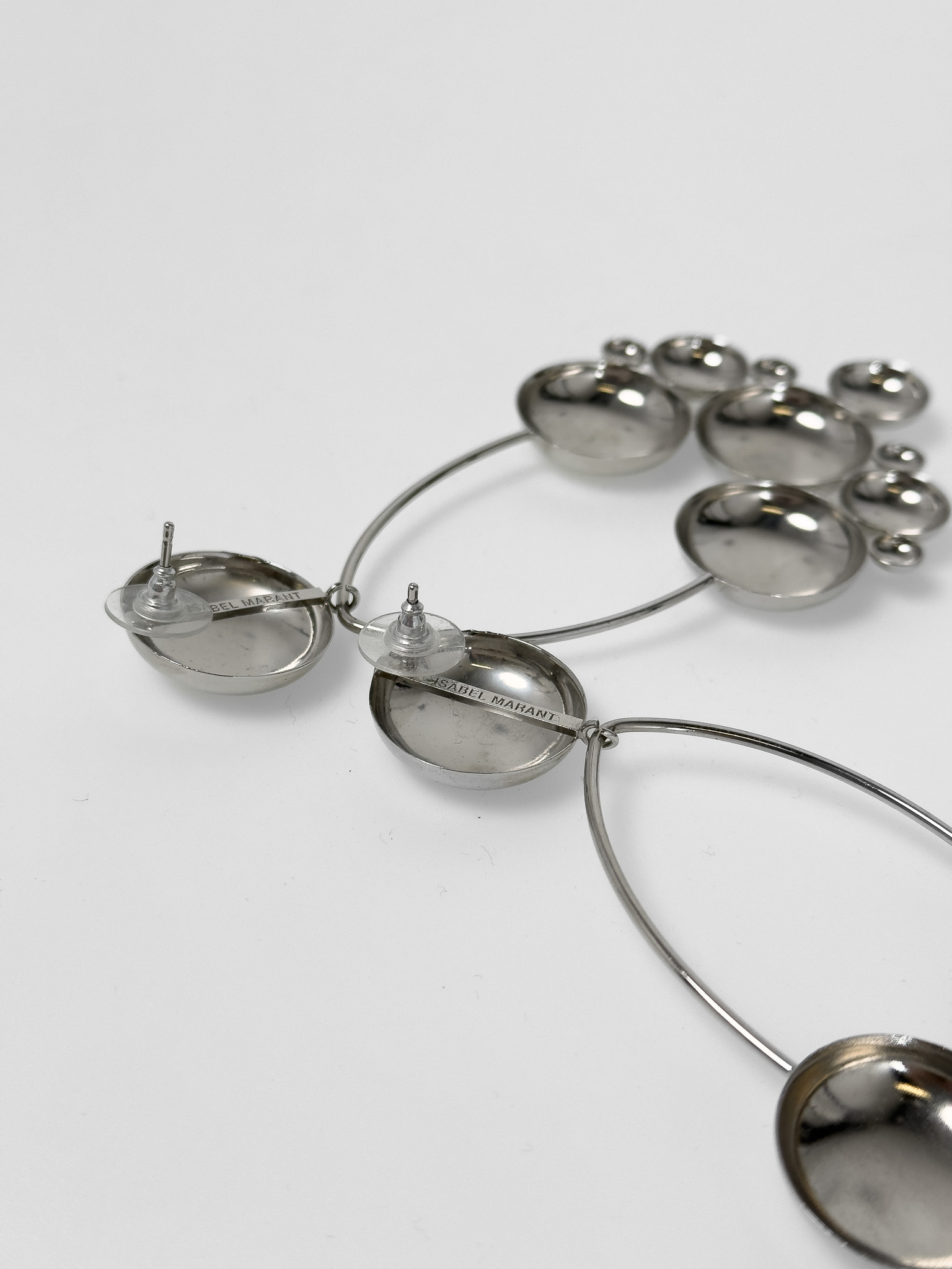 "kolczyki srebro boo long hoop earring; Srebrne wiszące kolczyki ozdobione o okrągłym wzorem, trójkątne wycięcie, duże, połyskujące, wkrętki, logo marki od wewnętrznej strony, w zestawie z workiem przeciwkurzowym."