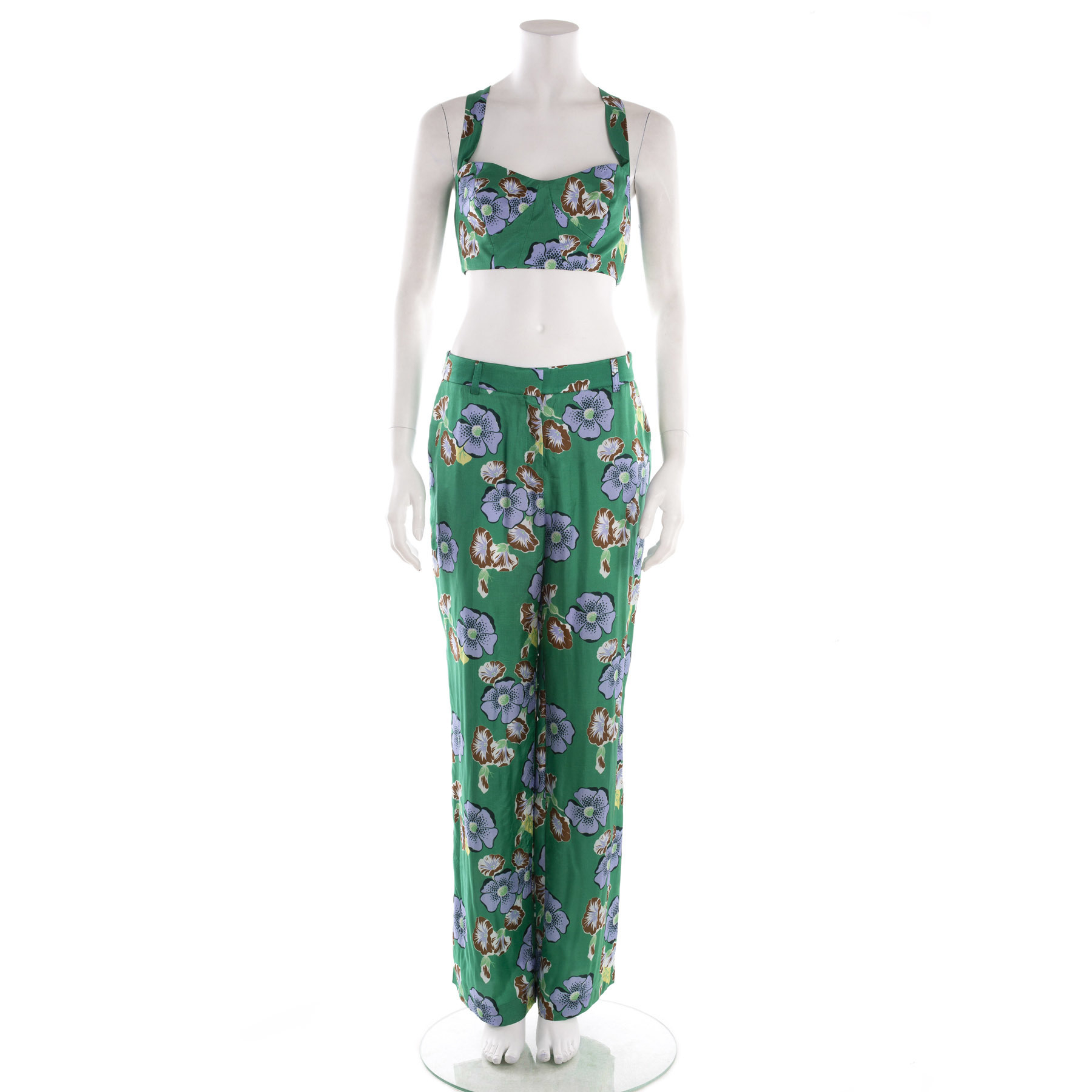 proste spodnie ,zapinane na suwak + top wiązany . Wykonane z 100% viskozy , rozmiar 40. Nowy z metką"