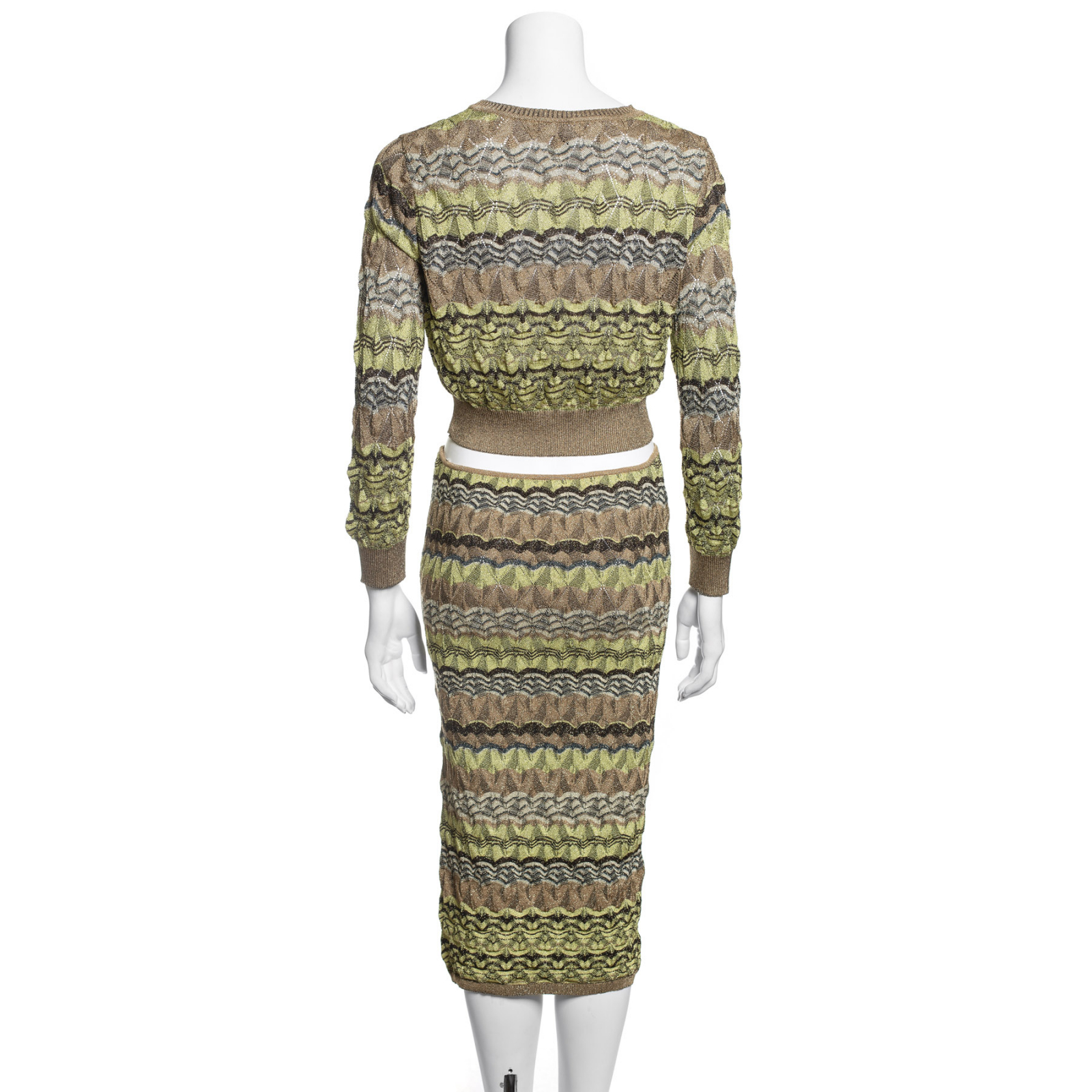 "ołówkowa spódnica+ kardigan limonkowo brązowy z metaliczną nitką"