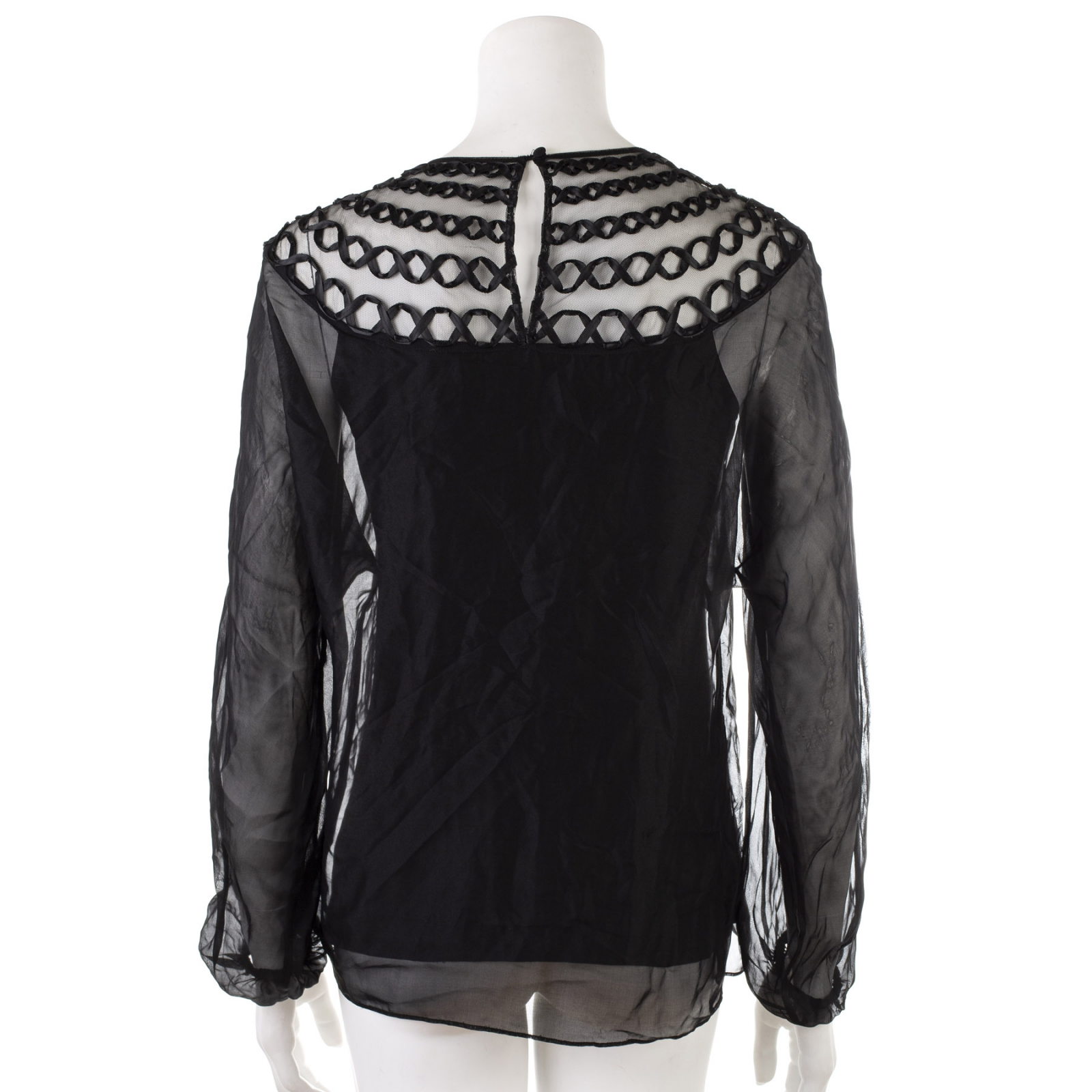 "czarna bluzka jedwabna z aplikacją przy dekolcie, szerokie rękawy , rozmiar S"