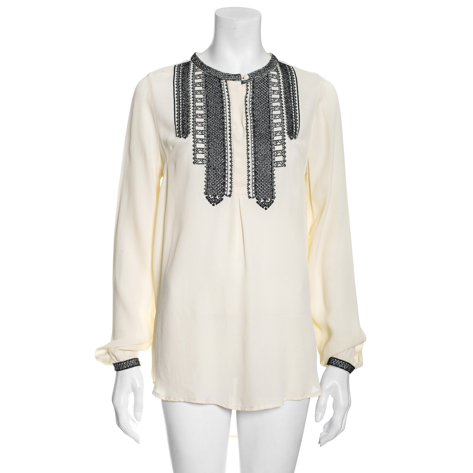 "kremowa koszula, czarne wyszycia przy dekolcie i na mankietach, z metką, rozmiar 34"