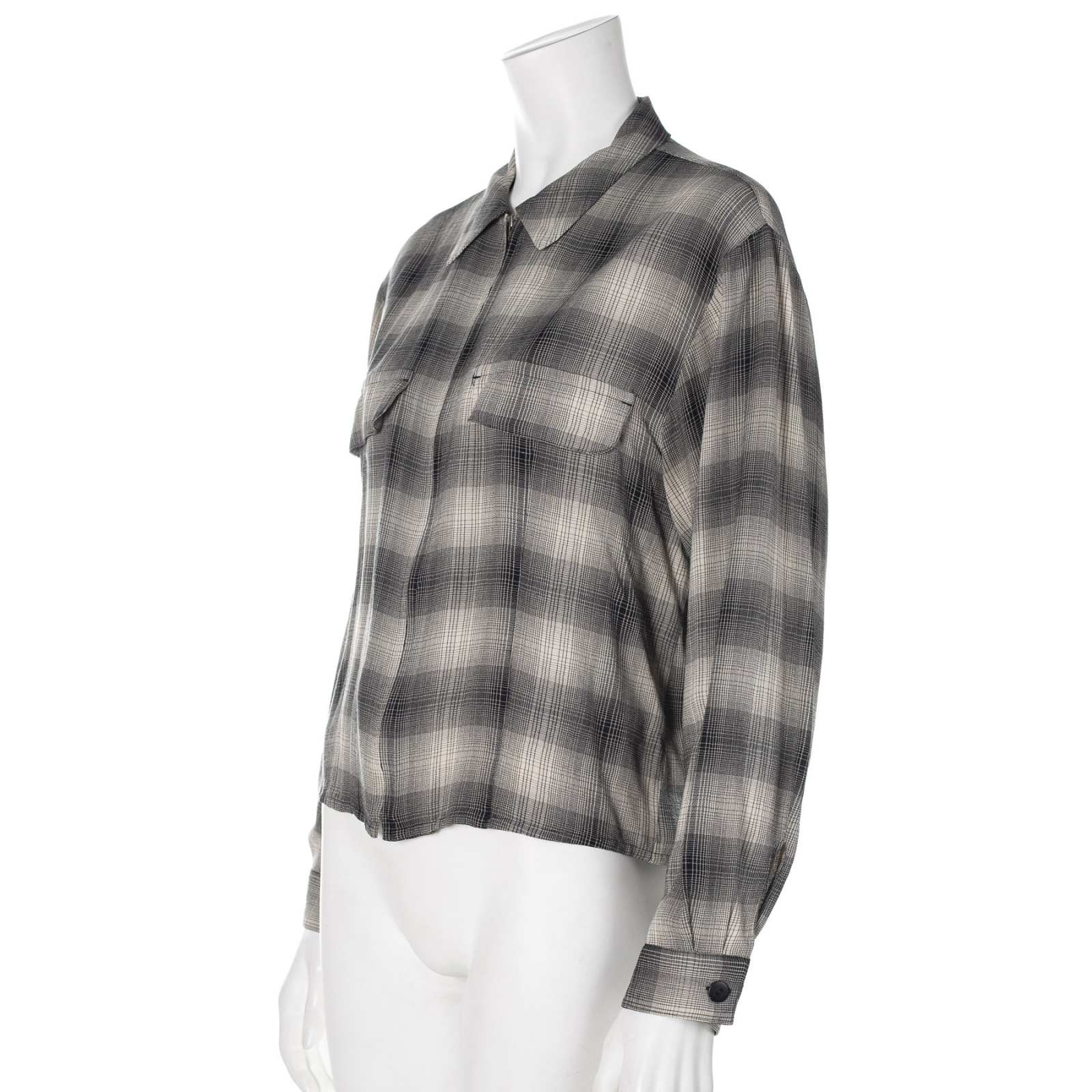 "krótka koszula w beżową kratę, zapinana na suwak"