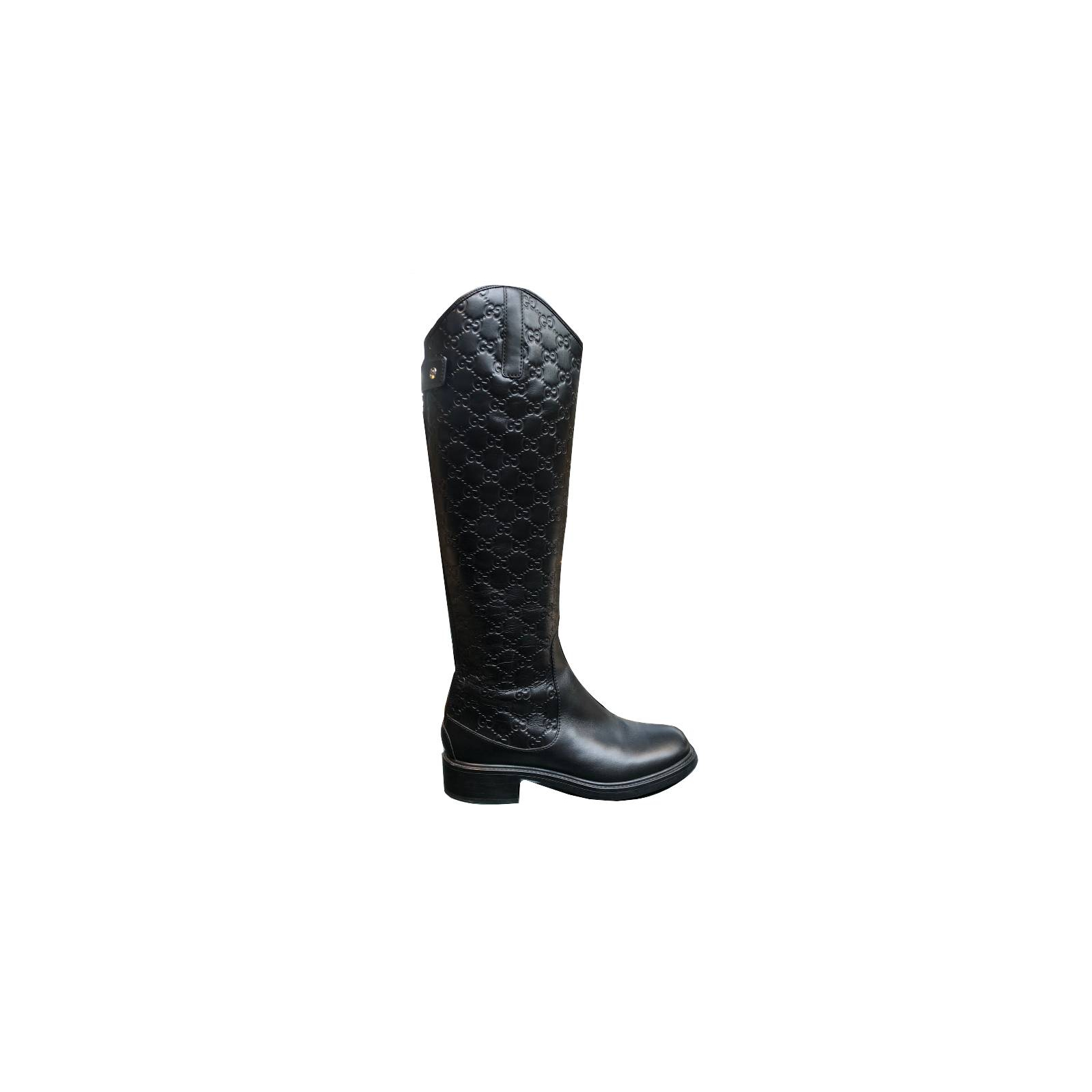 "Czarne długie kozaki na niskim obcasie, logowana cholewka, z tyłu suwak na całej długości, rozmiar 38, używane, stan bardzo dobry. Założone tylko raz."