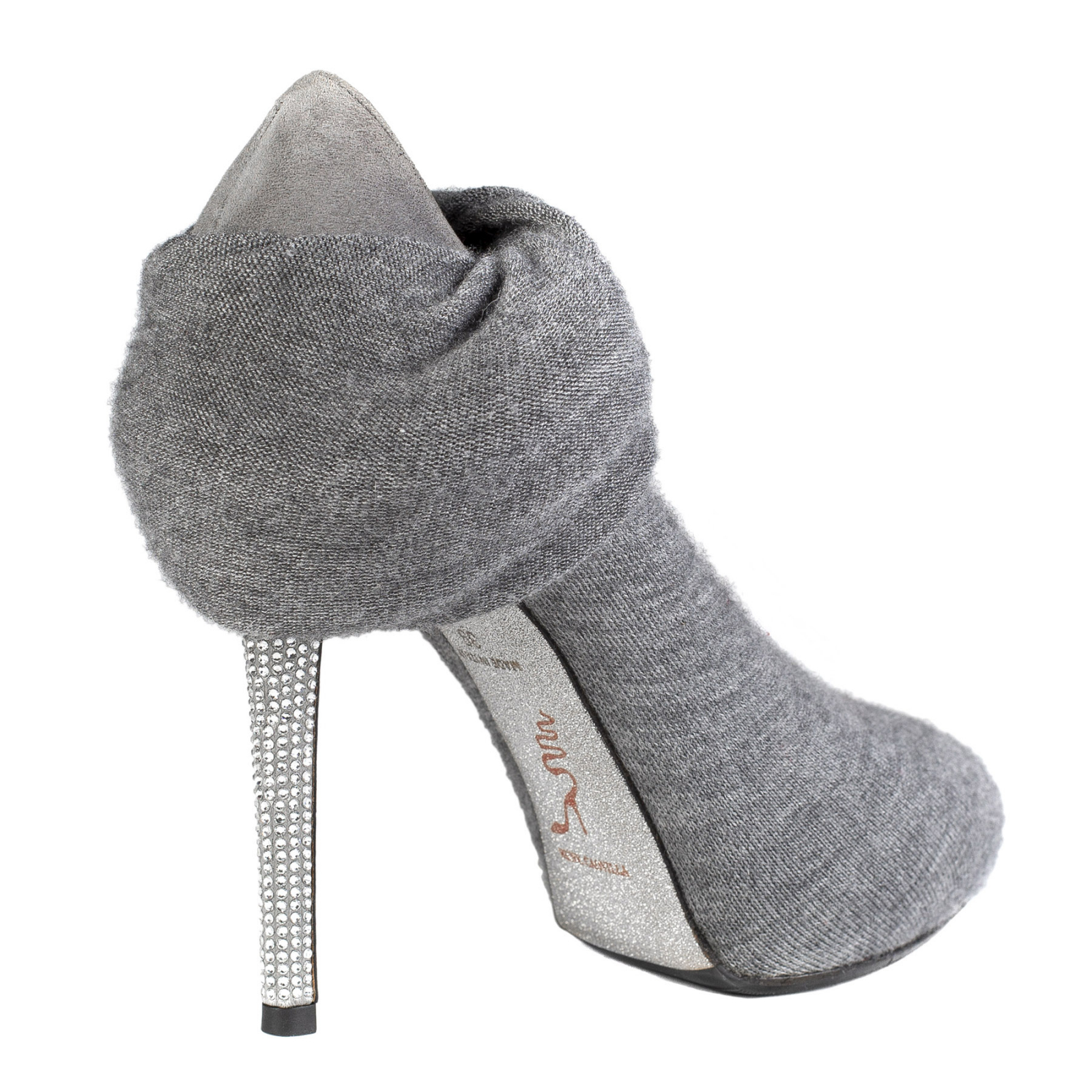 "szare materiałowe kaszmirowe kozaki przylegające do nogi, jak skarpetka, srebrny obas wysadzany kryształkami, srebrna brokatowa podeszwa, rozmiar 39,Rene Caovilla over-the-knee boot in jersey knit"