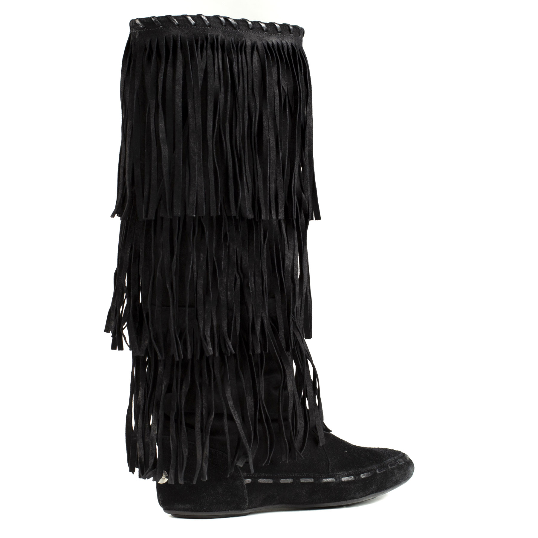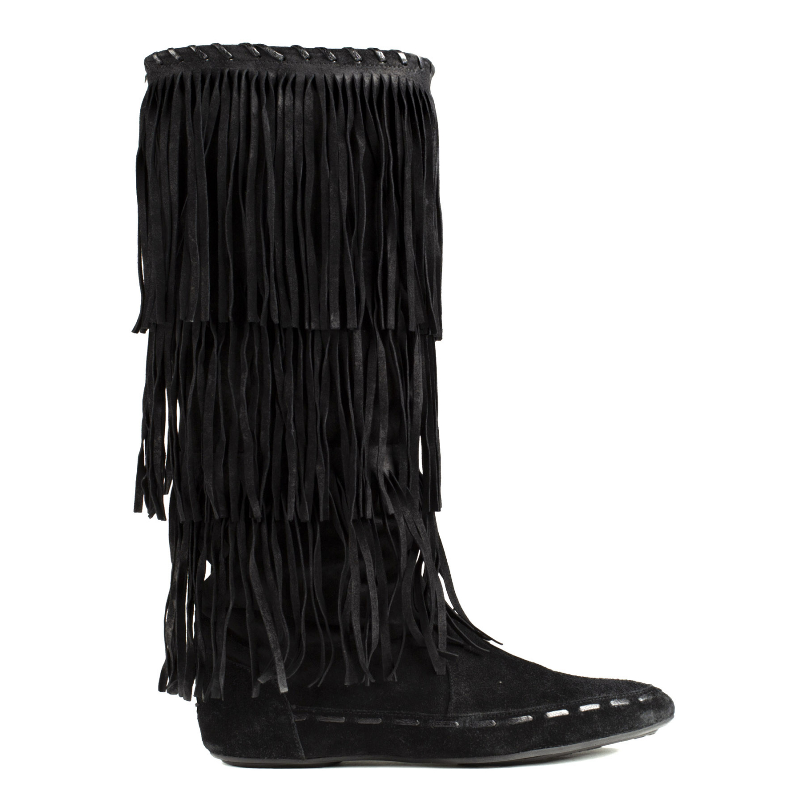 "kozaki czarne zamszowe, płaskie, frędzle, rozmiar 39,5"
