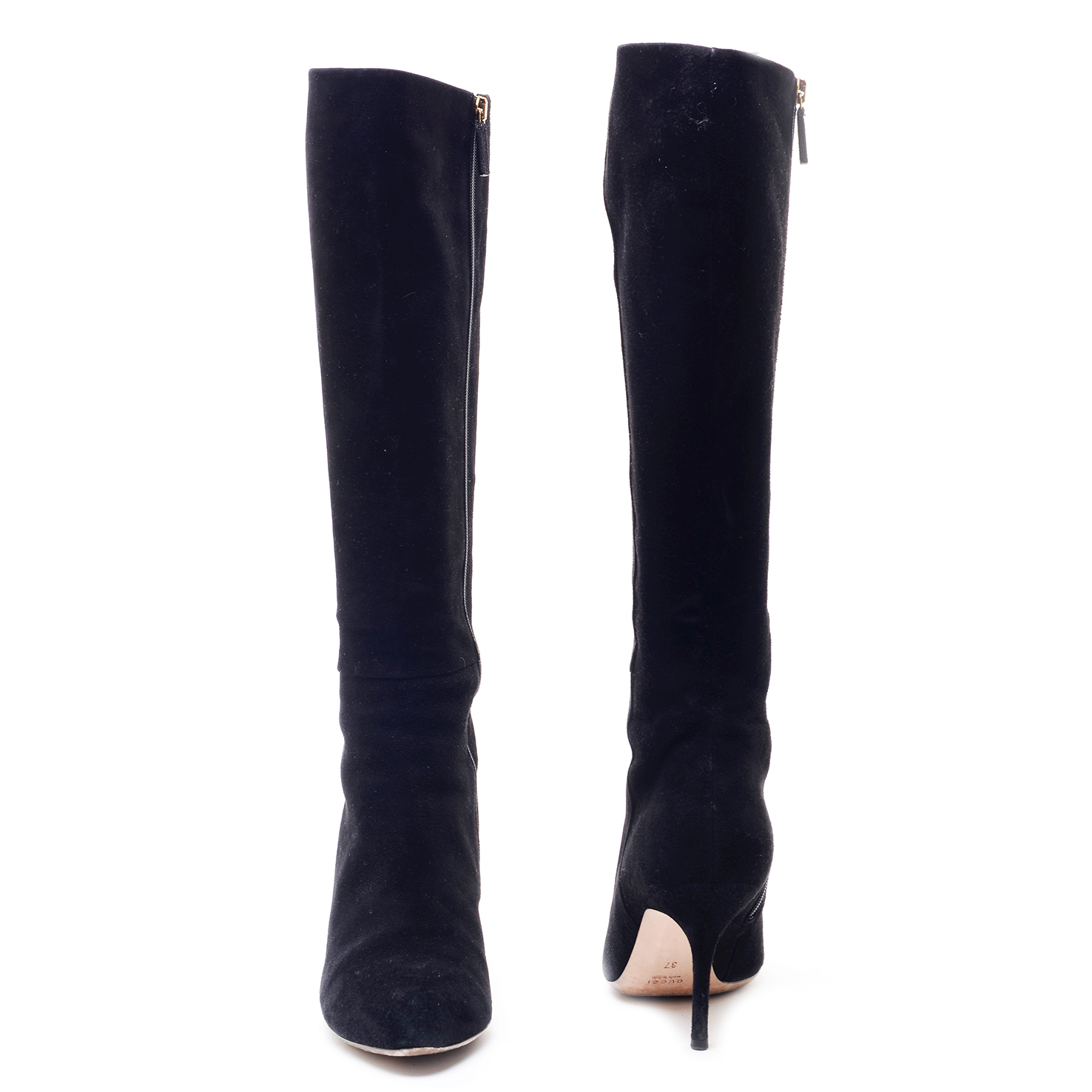 "Czarne kozaki na obcasie , w szpic , zapinane na suwak. Wykonane z zamszu , rozmiar 37"