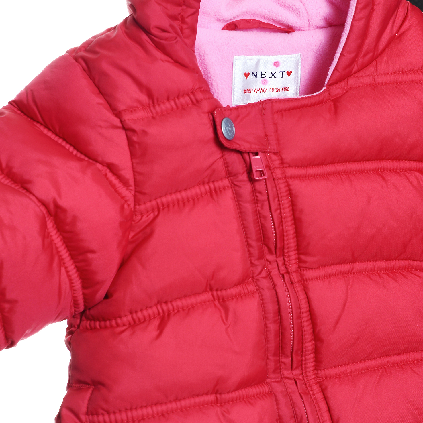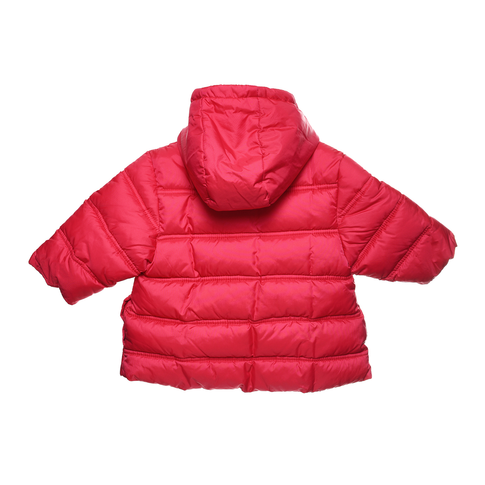 "Kurtka w kolorze czerwonym, pikowana, z kapturem, w bardzo dobrym stanie, wiek : 6-9 miesięcy, 10 kg"