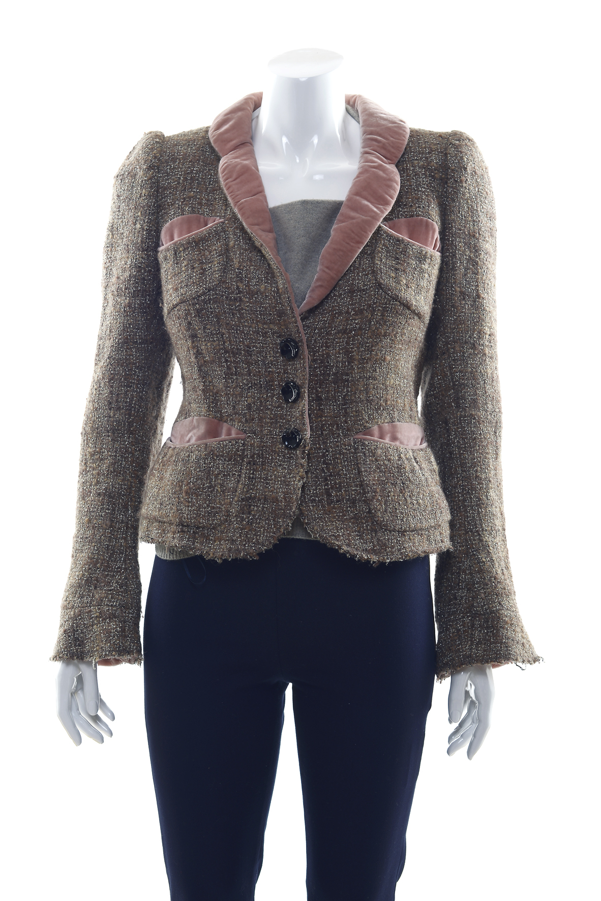 "Marynarka tweedowa, wykończenie z aksamitu, stan dobry rozmiar 38."