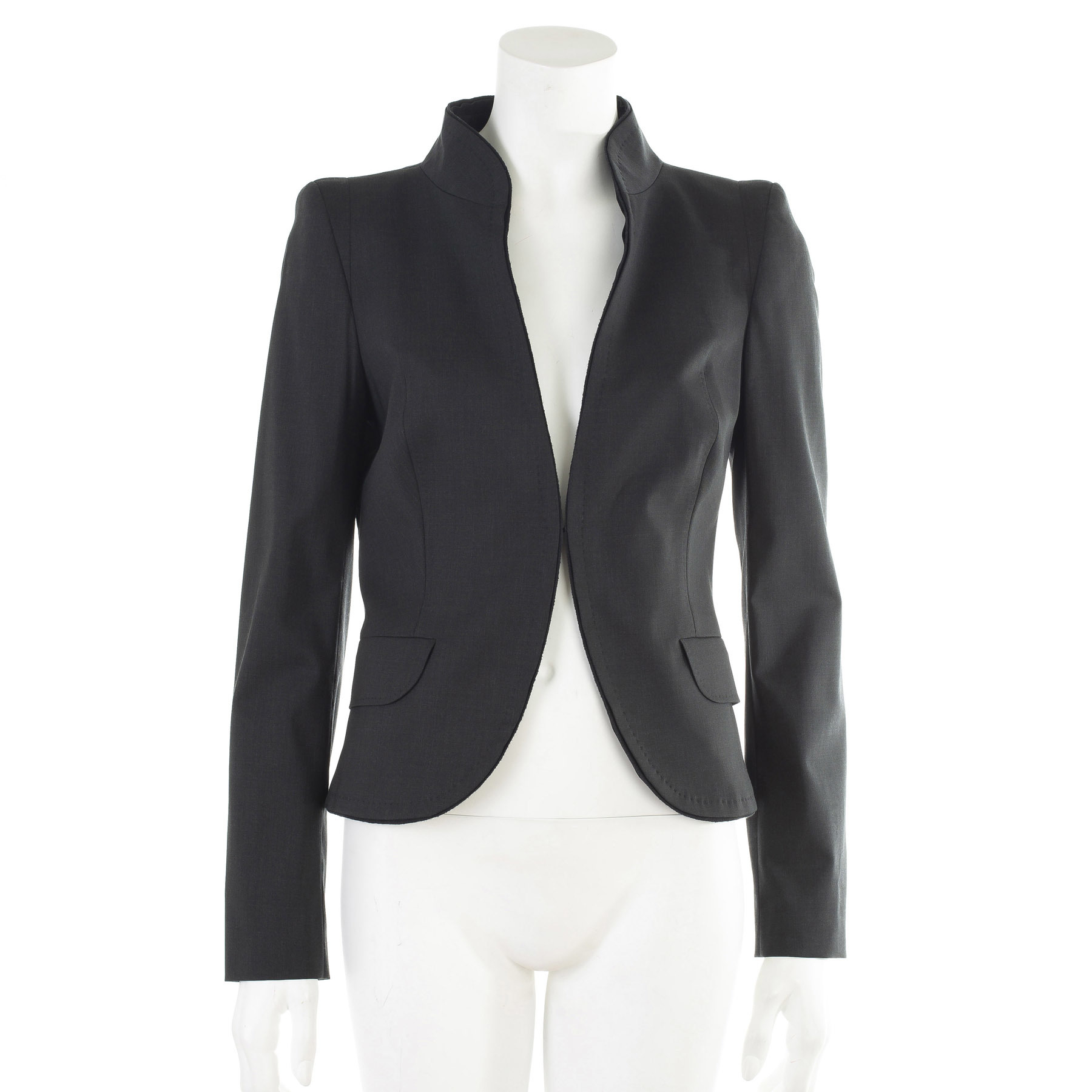 "Grafitowa marynarka z kieszonkami , rozm 36 ,bez klap , ze stójką"