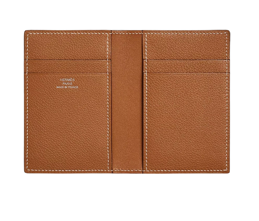 "camelowe etui na karty, prostokątne, w środku przegrody, obszyty białą nitką, nowe pudełko w zestawie. Wymiary: 10,5 cm x 7 cm."
