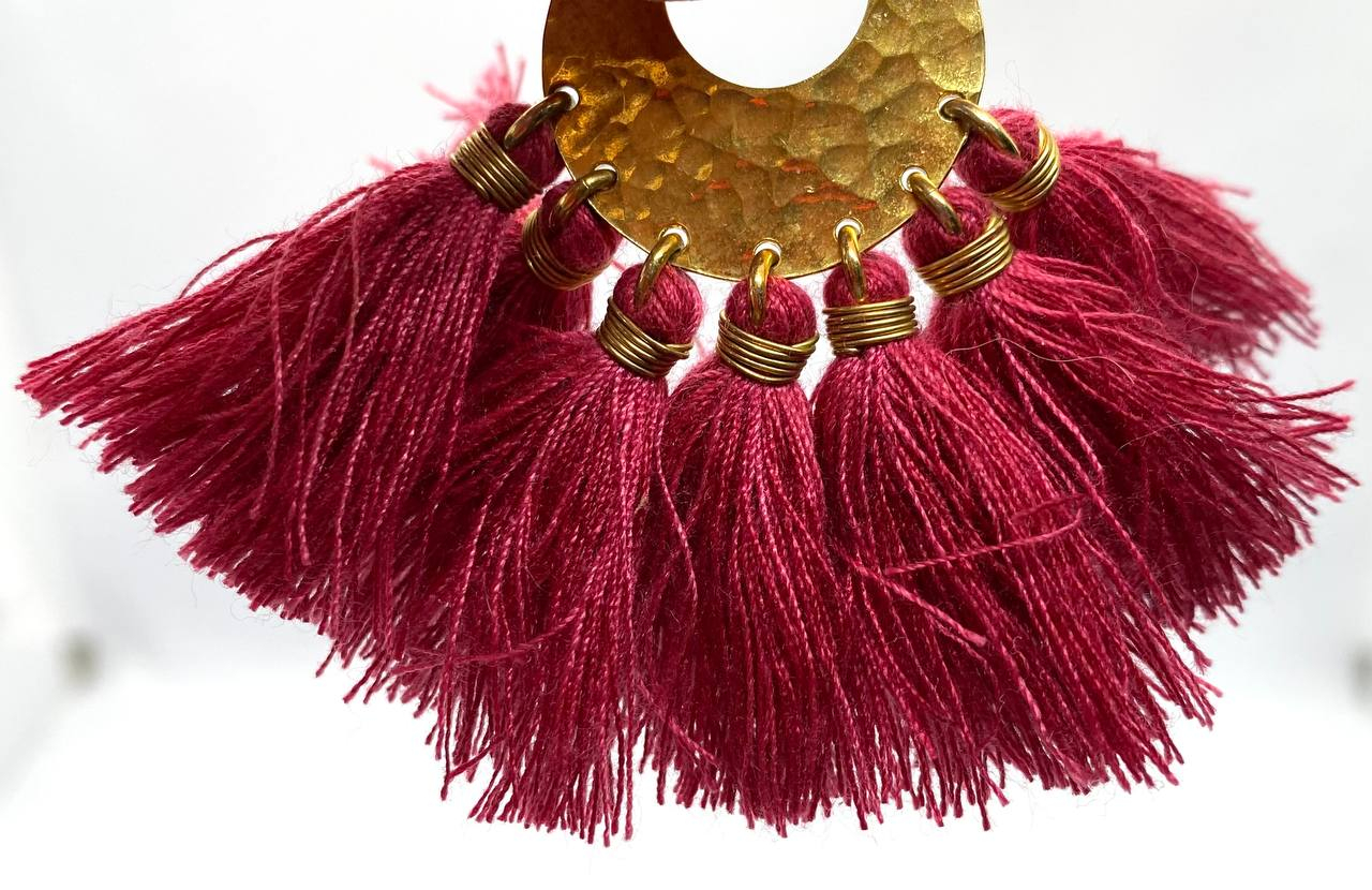 "kolczyki ze złotymi elementami, wkręty, długie, 7 rzędów różowych chwostów, lekkie"