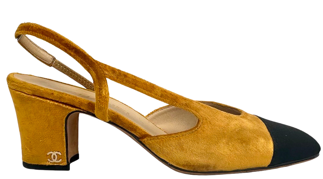 "Ritz.Żółte welurowe obcasy, z odkrytą piętą, czarne czubki. Rozmiar 37. Stan używane, posiadają delikatne zniszczenia."